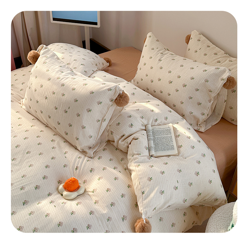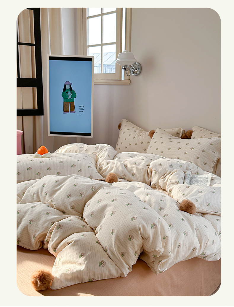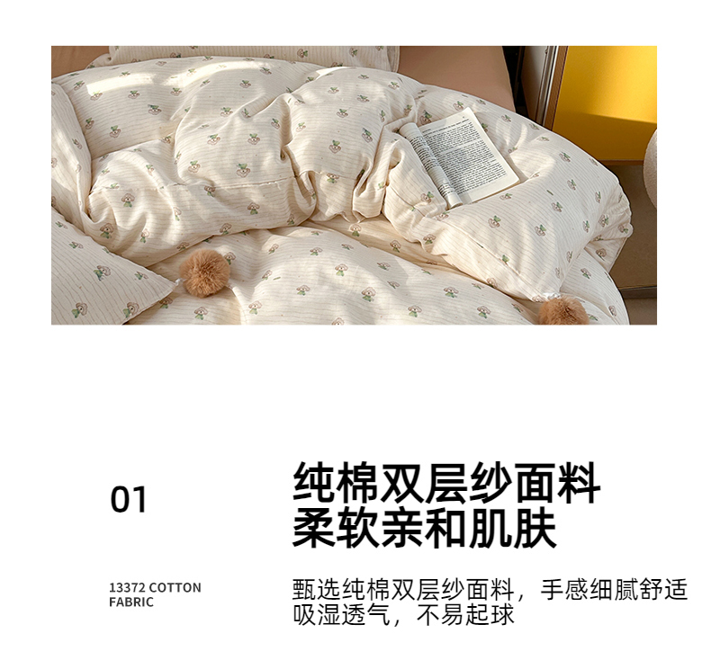 金爱家 2025新款亲肤舒适纯棉双层纱四件套 双层纱-萌犬日记