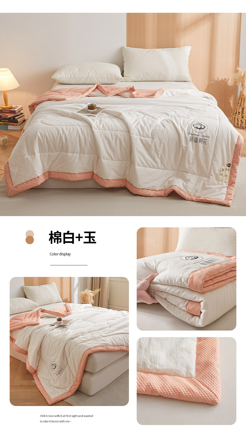 (总)熙宴家纺 2025新款水洗棉嵌绳款100%新疆棉花被,豆绿,粉玉,石灰,雾蓝