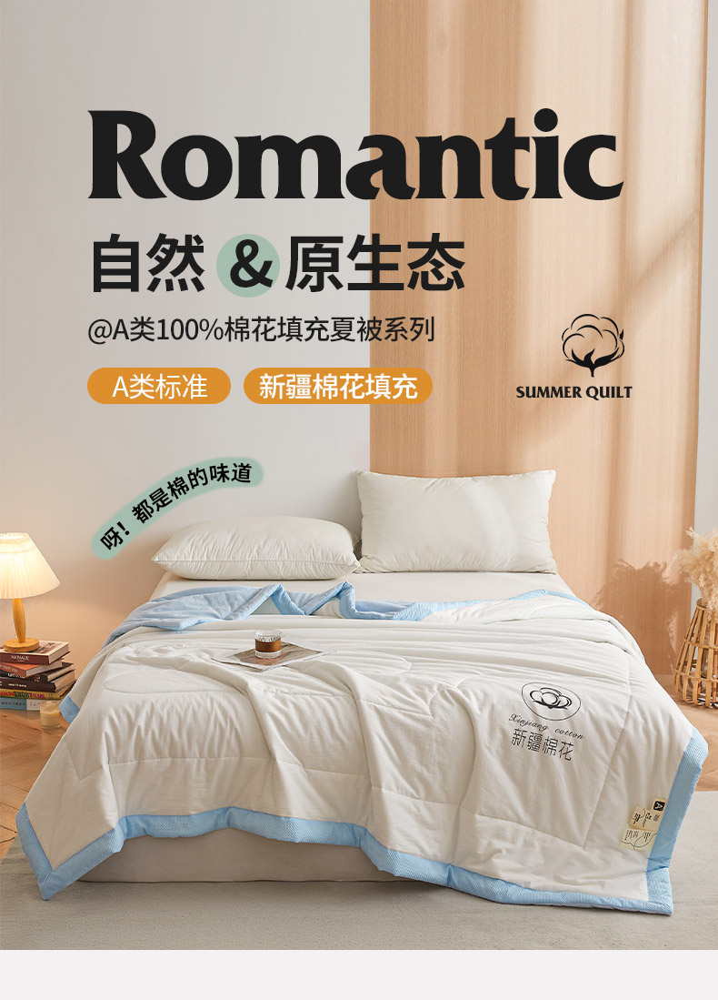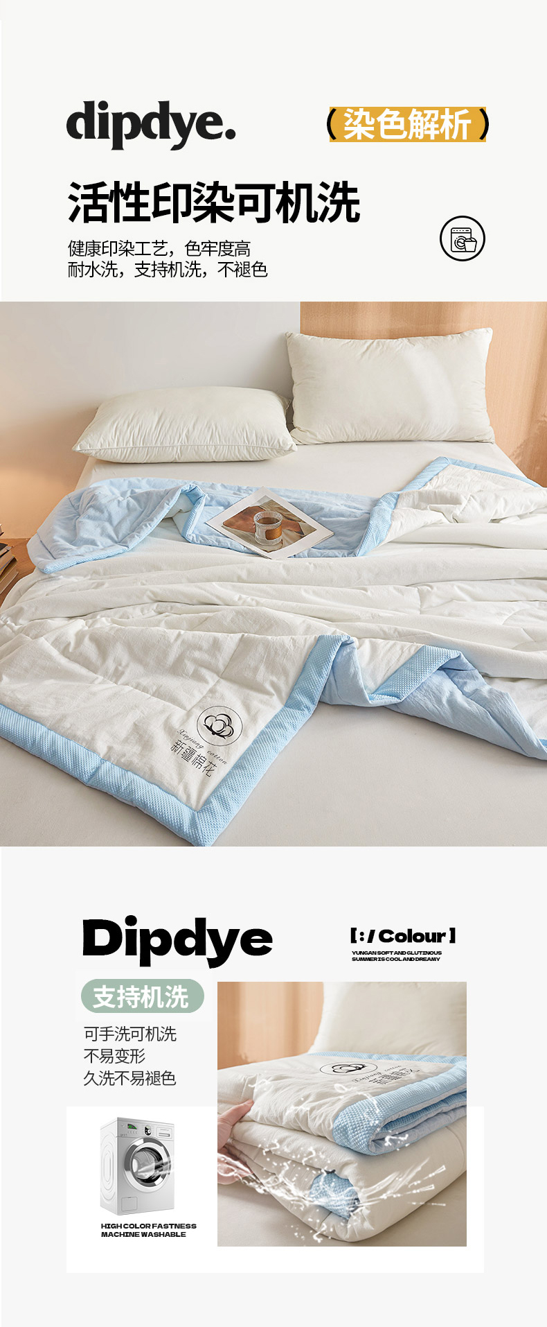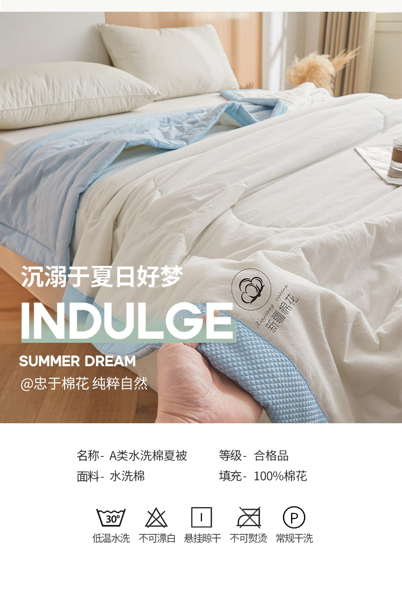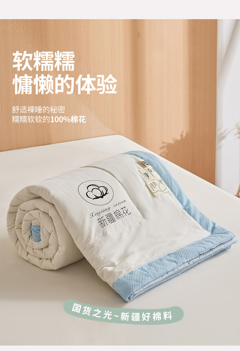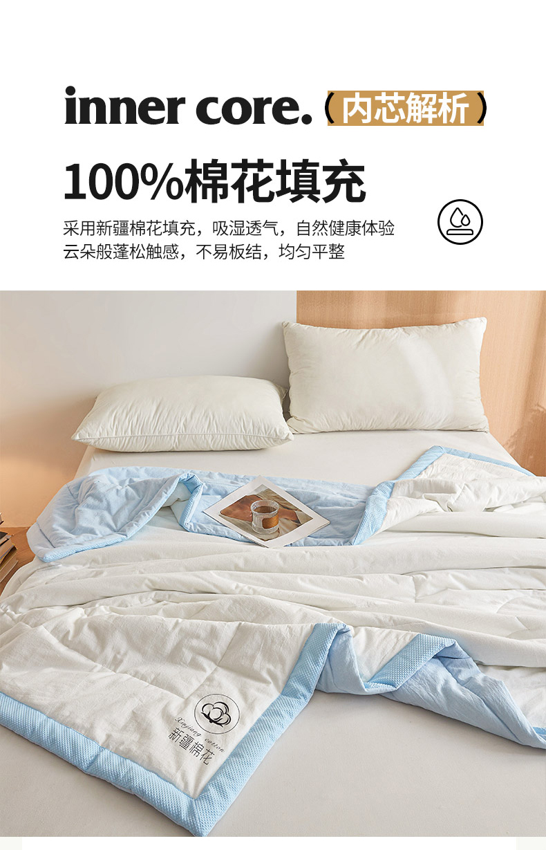 熙宴家纺 2025新款水洗棉100%新疆棉花夏被-棉白 棉白+蓝