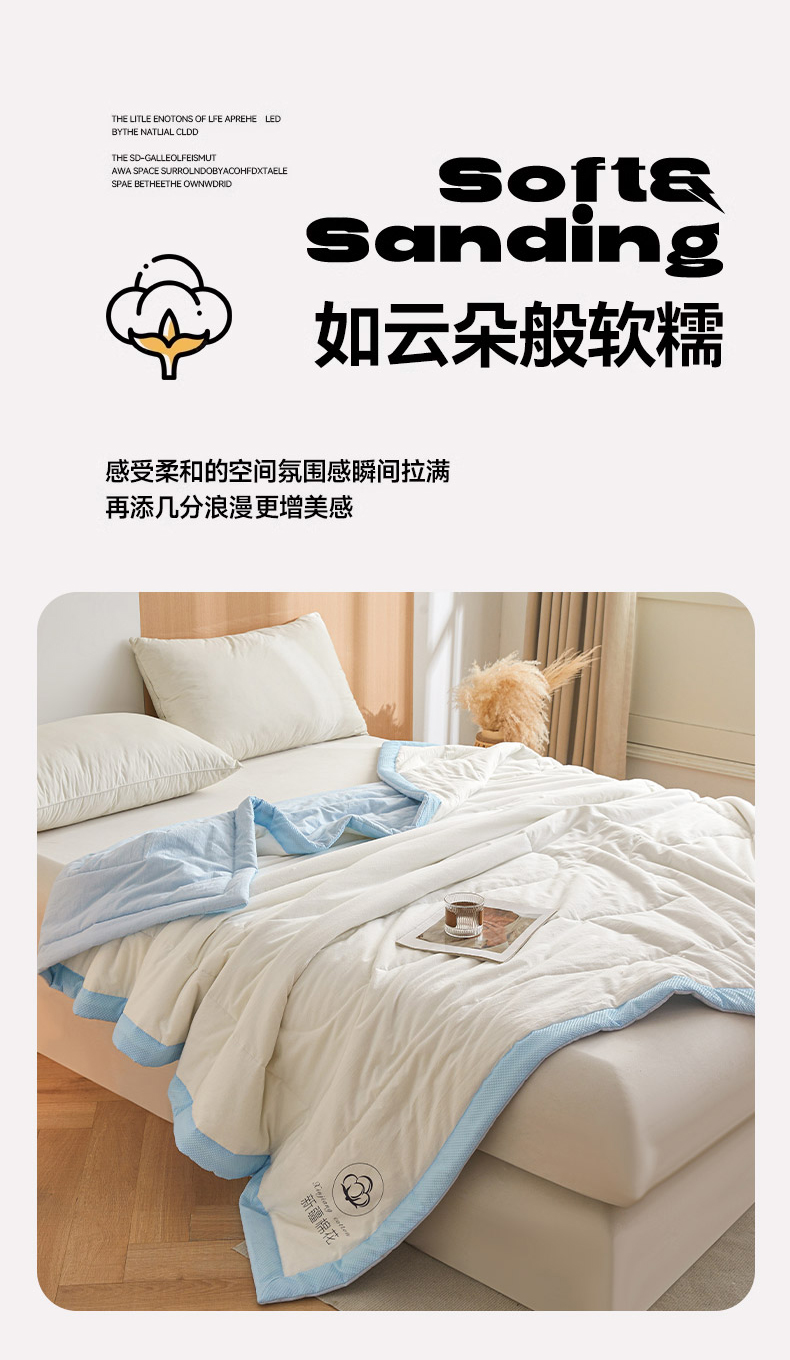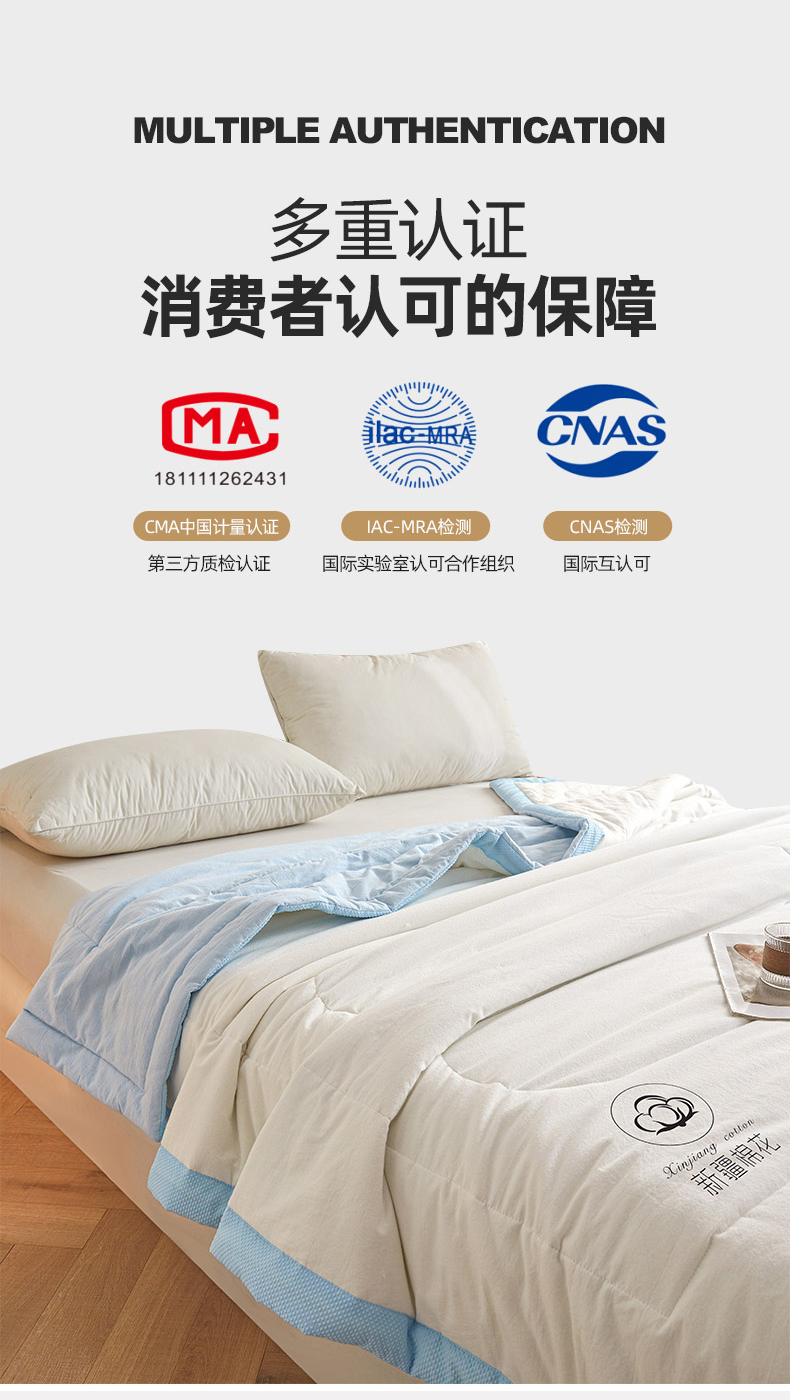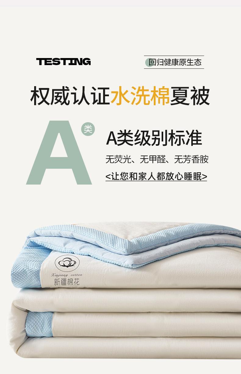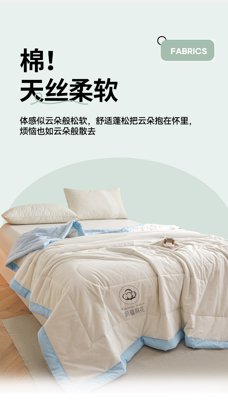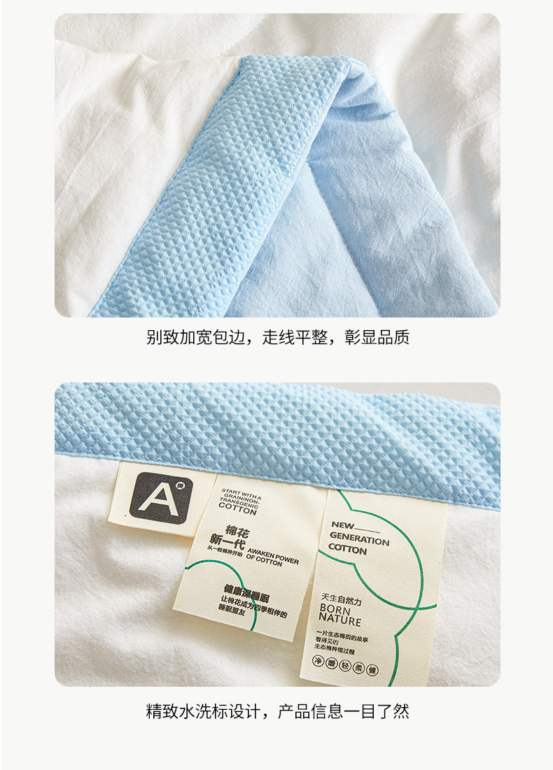 商品名称:熙宴家纺 2025新款水洗棉100%新疆棉花夏被-棉白 棉白+蓝