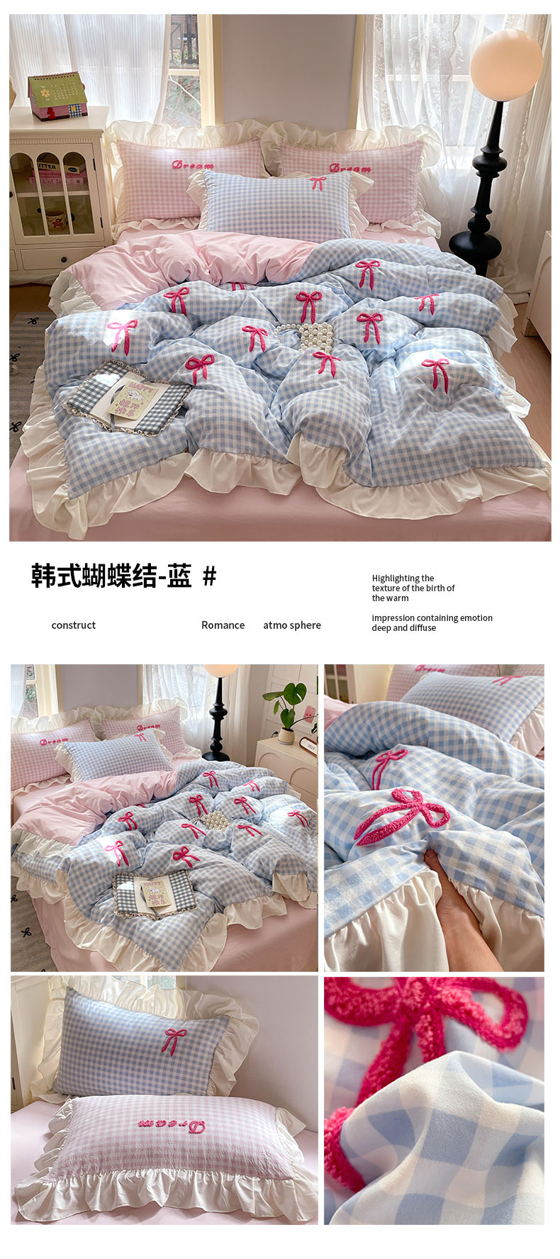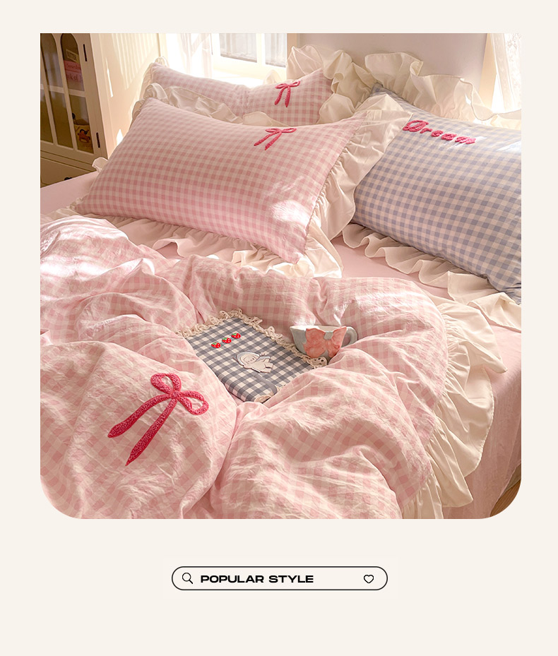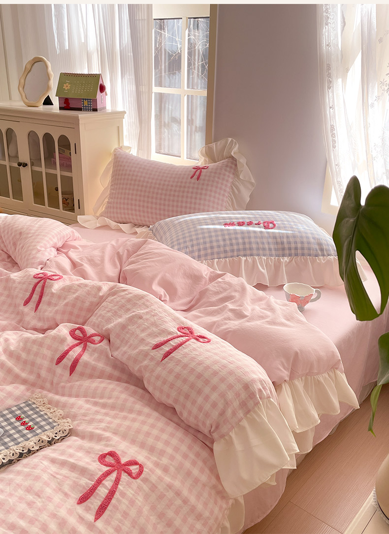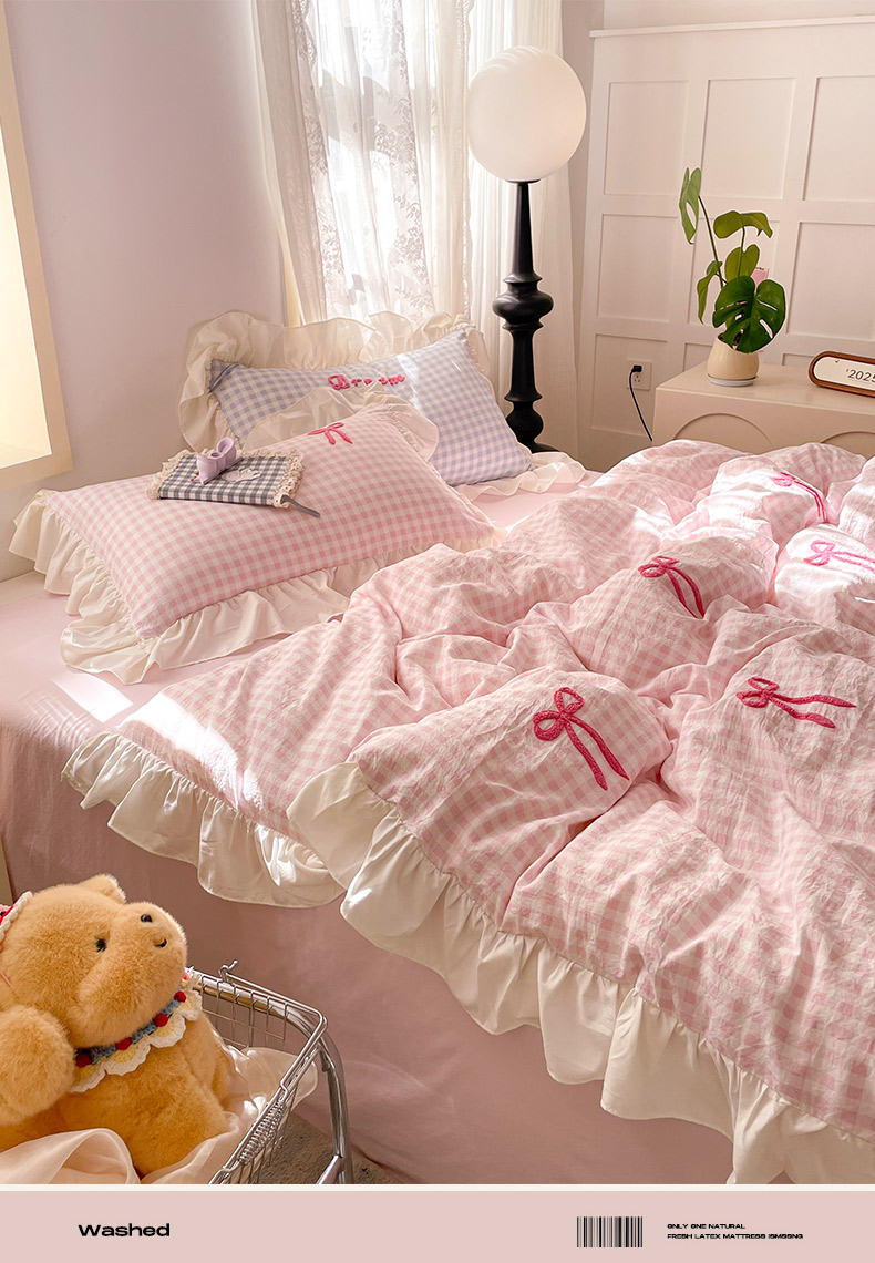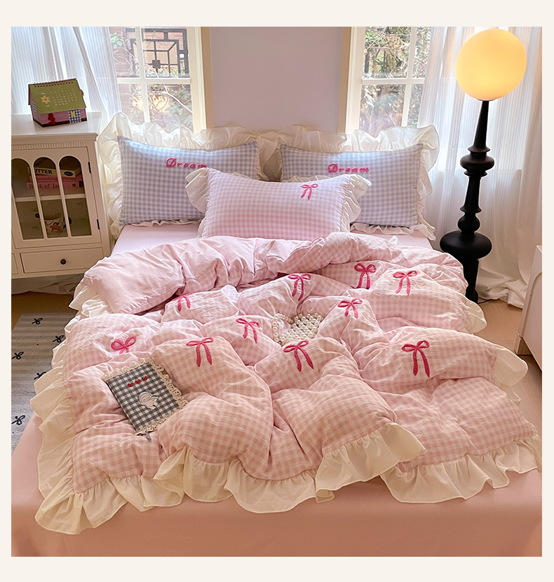 (总)沐辰2025春夏新款韩式花边款蝴蝶结四件套