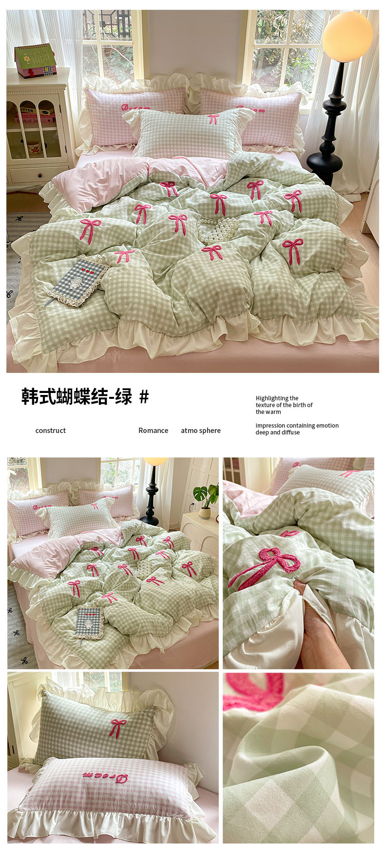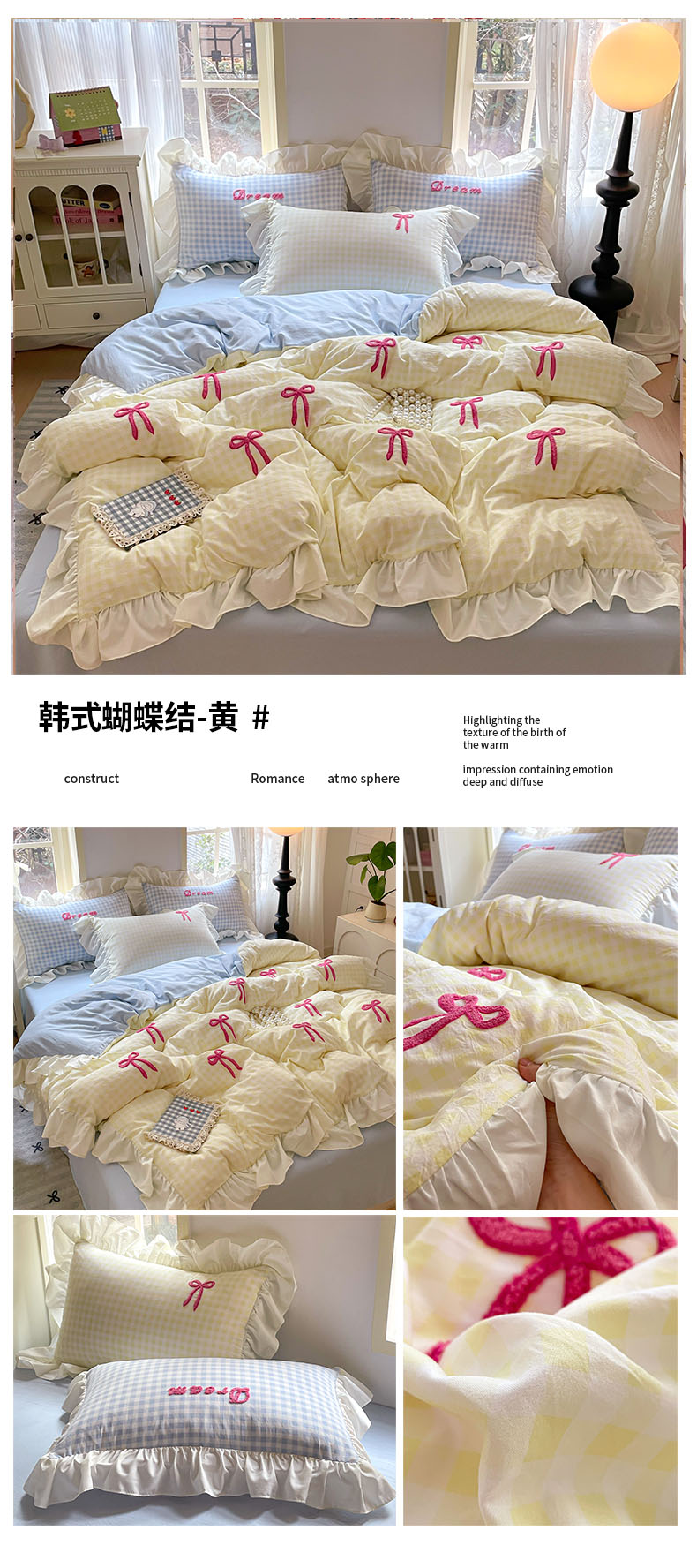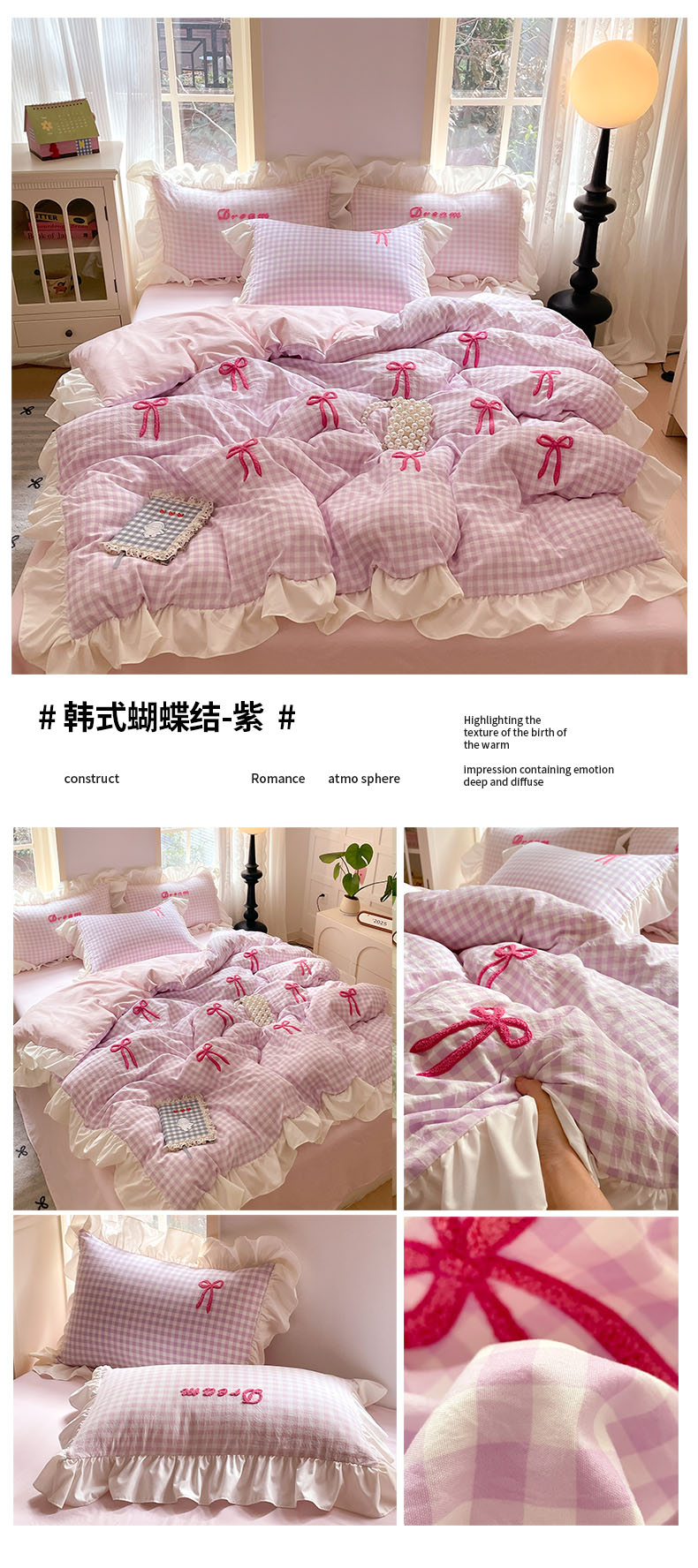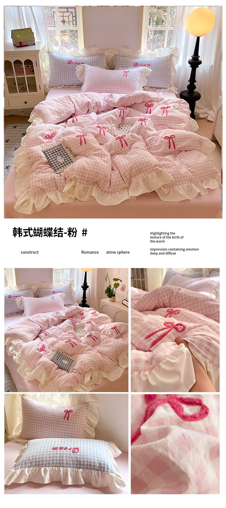 (总)沐辰2025春夏新款韩式花边款蝴蝶结四件套