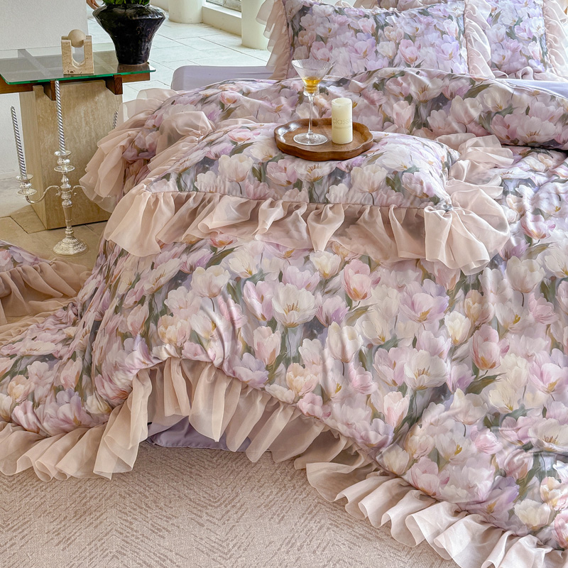 一比一家纺 2025新款棉代尔法式四件套 仙本娜