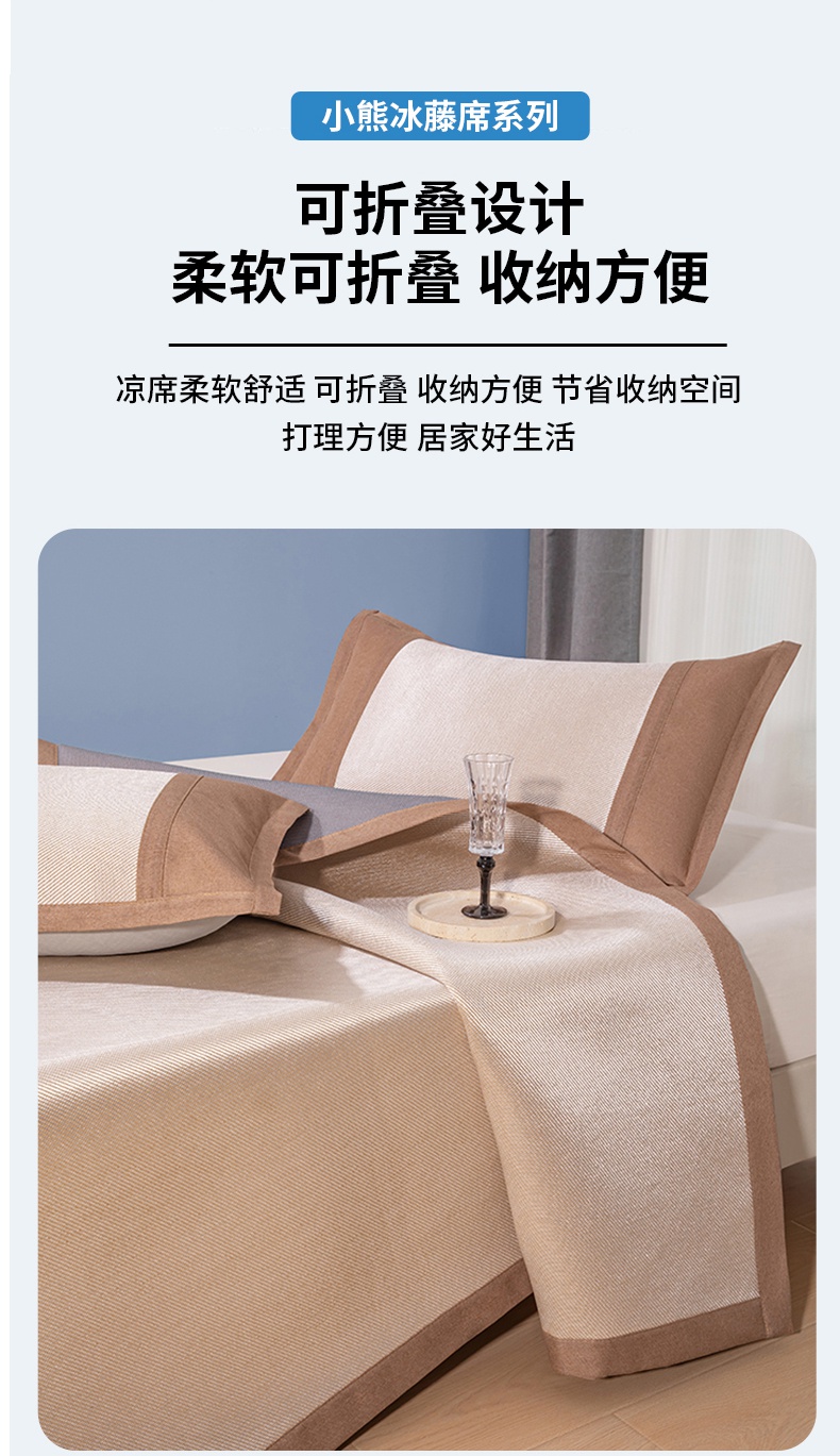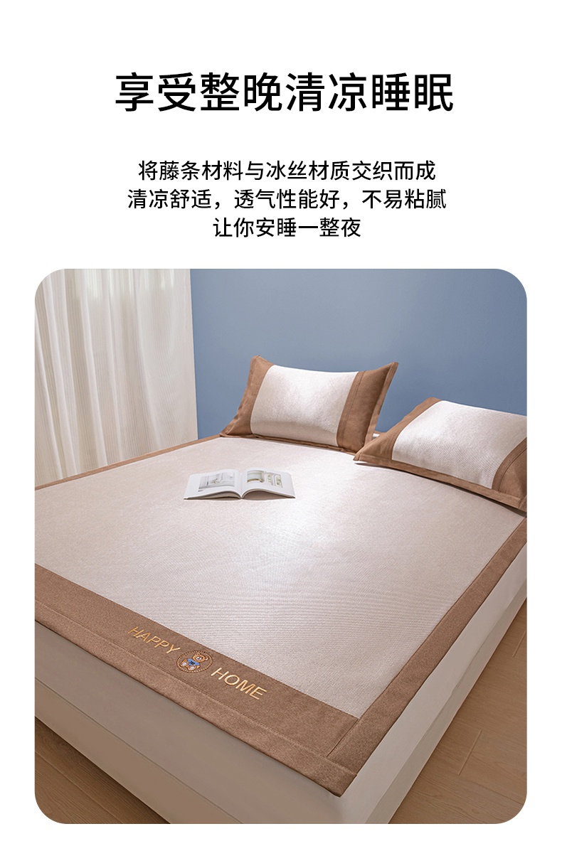 商品名称:航途席业 2025新款小熊藤冰丝凉席 快乐熊银灰