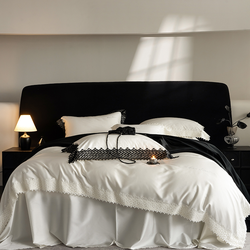 当前位置: 91家纺网 > 商品网购 > 床品套件 > 四件套 > 其它四件套 > 涞澳家纺 2025新款天丝棉花边款四件套--星娜系列 星娜-珍珠白(黑花边)