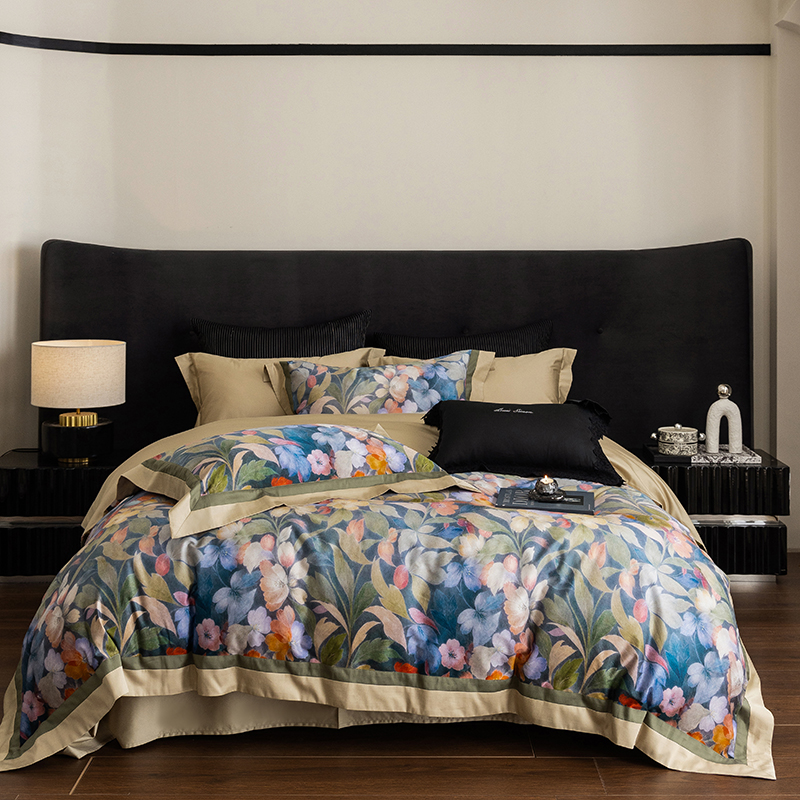 商品名称:涞澳家纺 2025新款全棉数码印花宽边四件套 岸芷