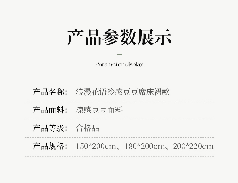 商品名称:(总)小牛席业 2025新款浪漫花语冷感豆席床裙系列凉席藤席冰藤席冰丝席竹席草席空调席乳胶席豆豆席