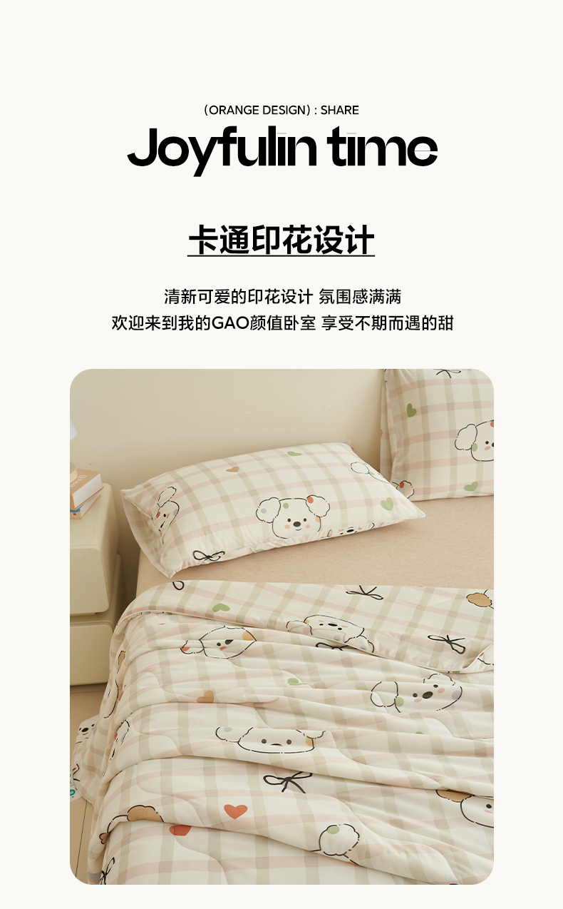 商品名称:畅销被业 2025新款凉感丝卡通系列印花夏被 格子狗