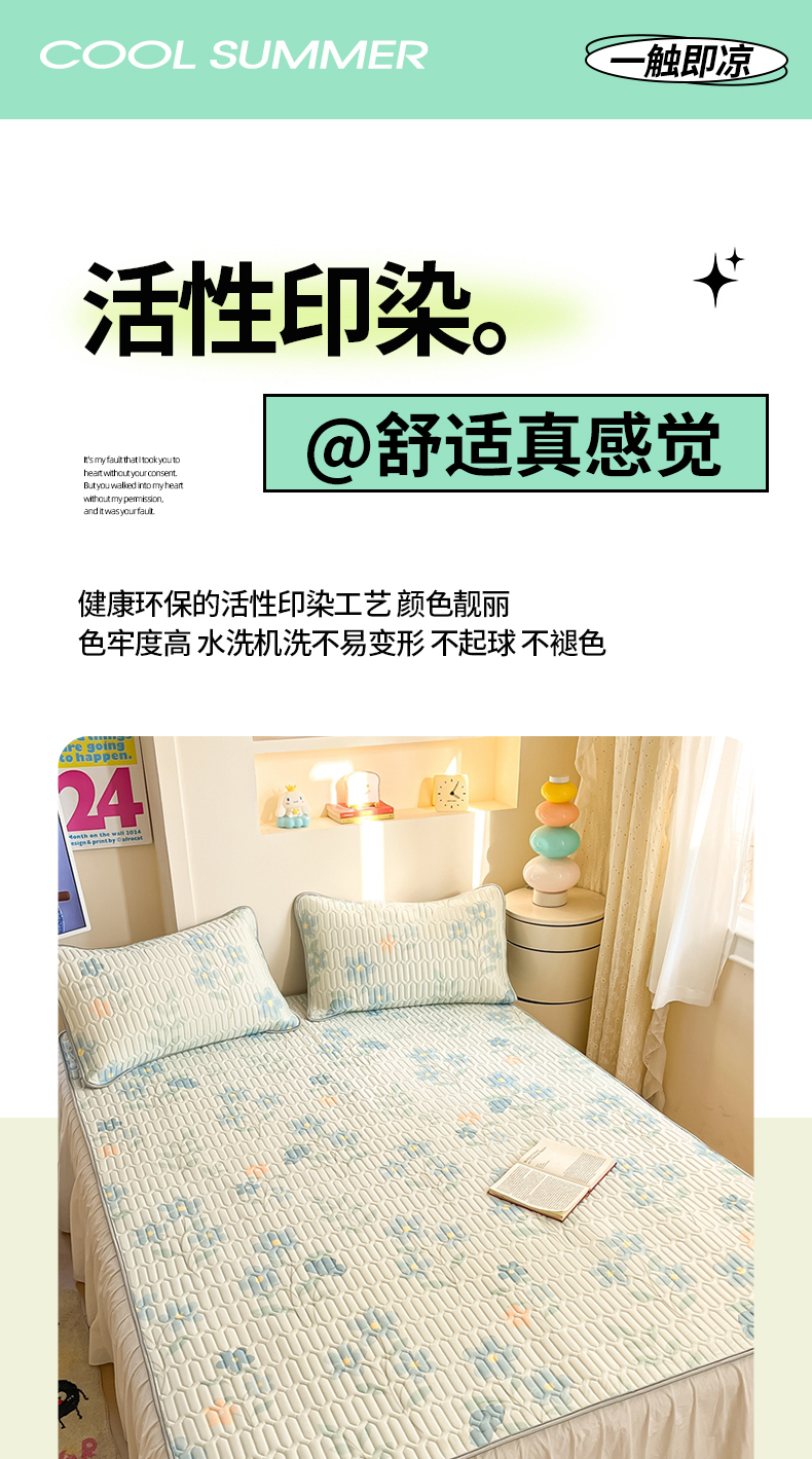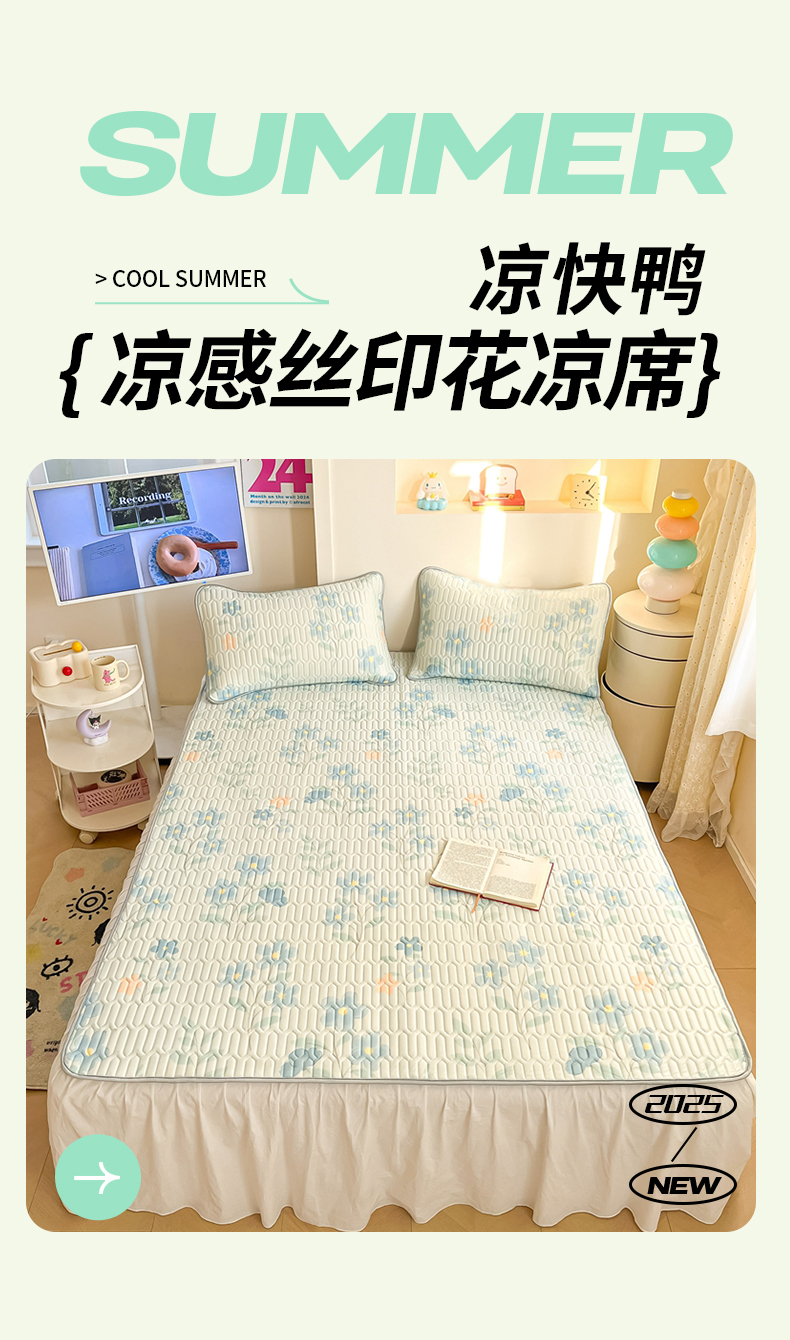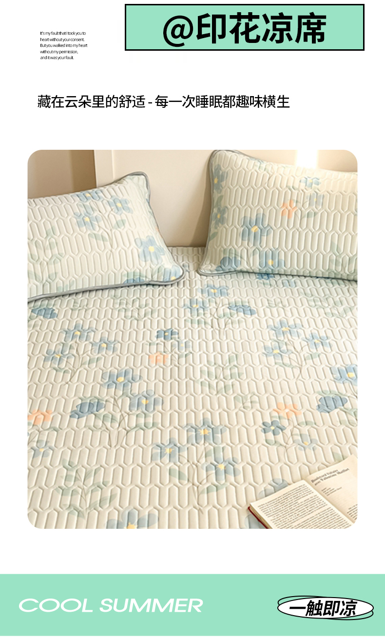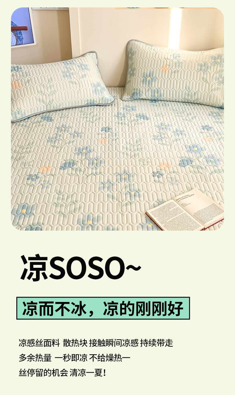 商品名称:川悦生活 2025新款小阪凉感丝印花凉席 水色花语