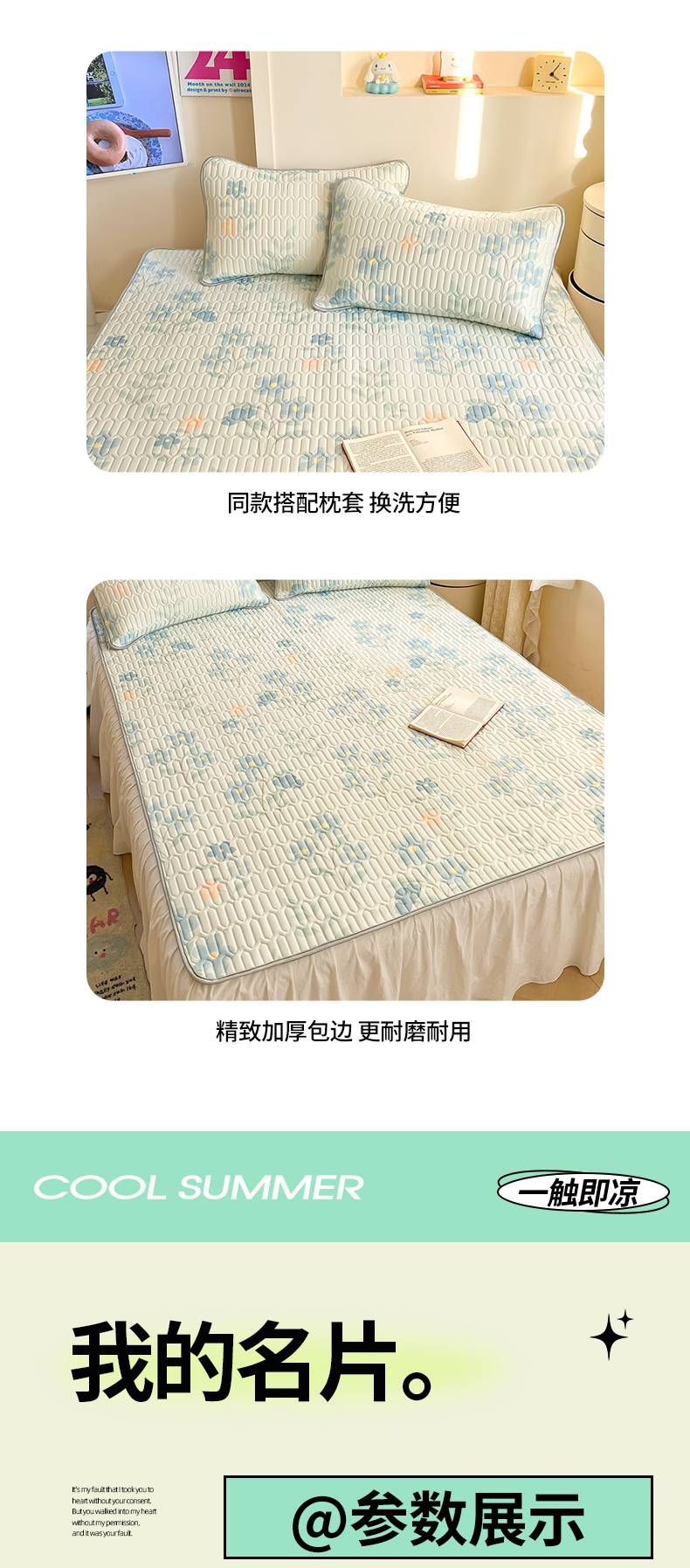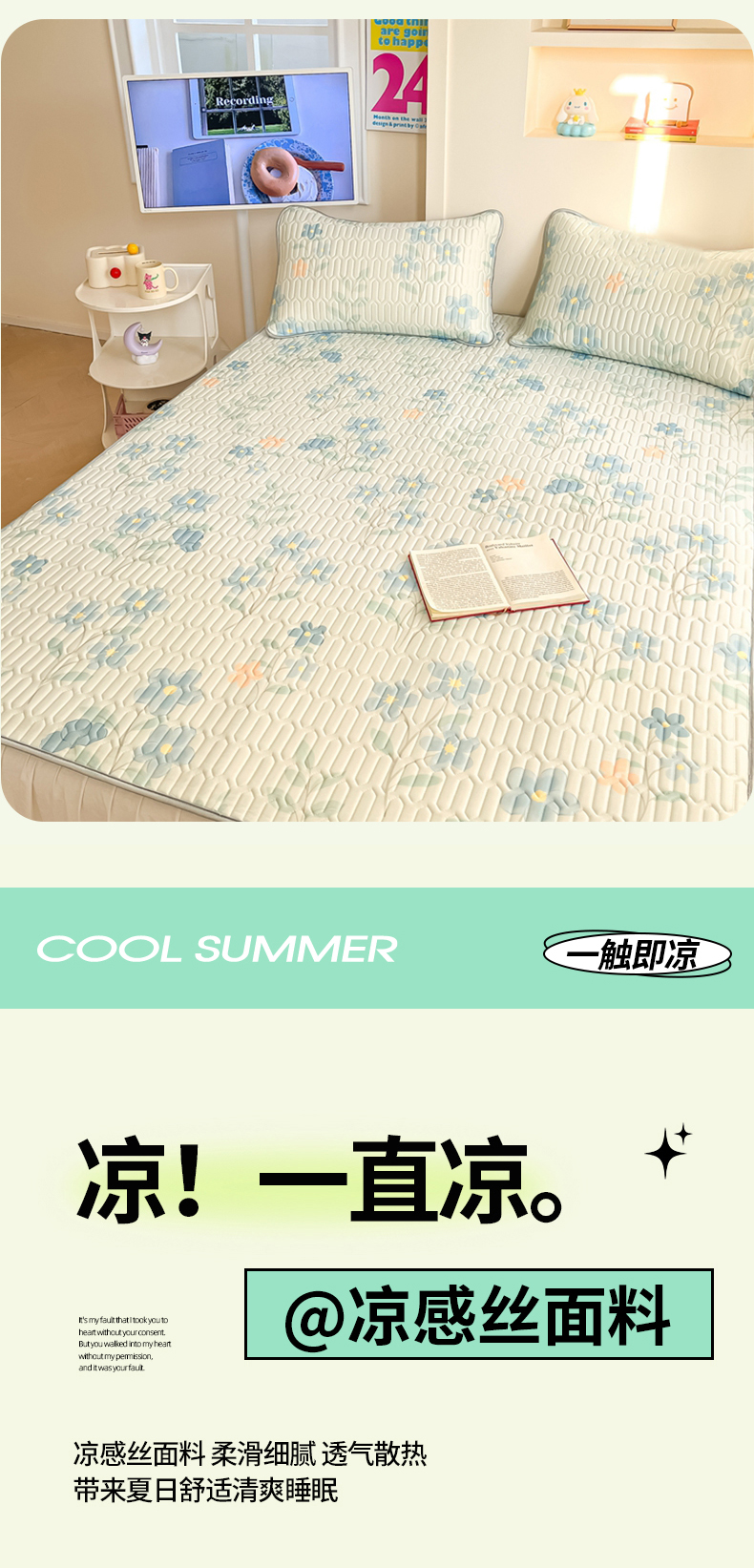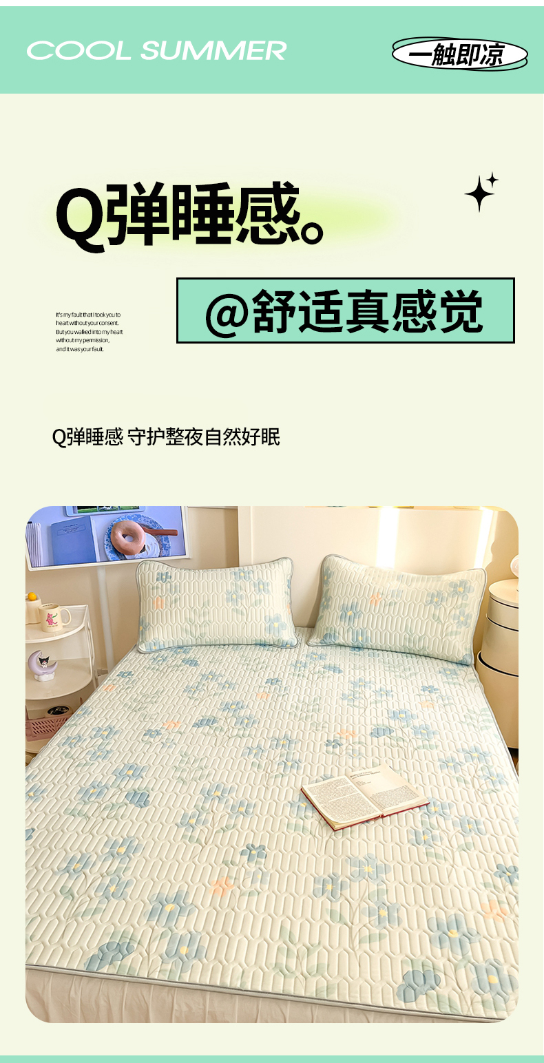 商品名称:川悦生活 2025新款小阪凉感丝印花凉席 水色花语