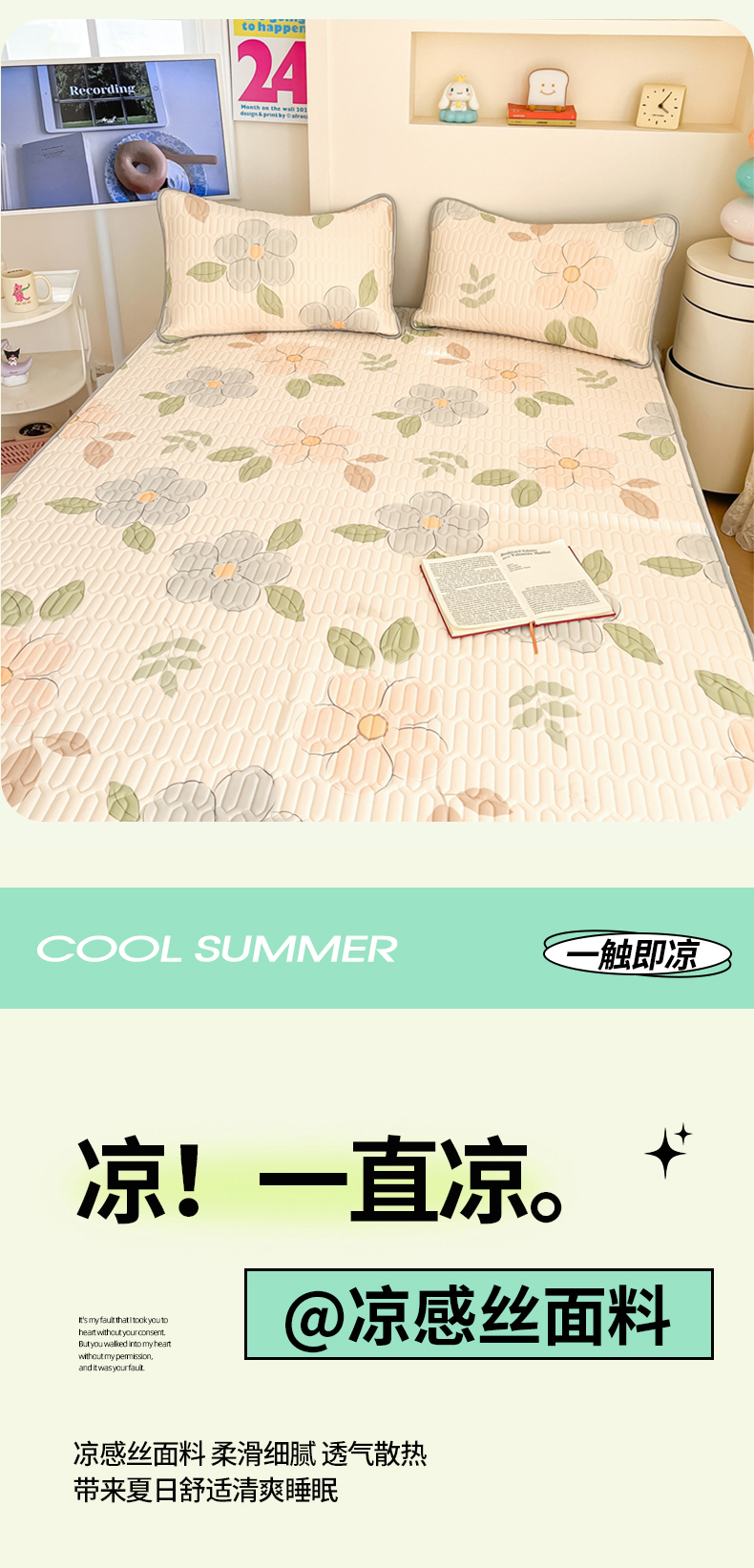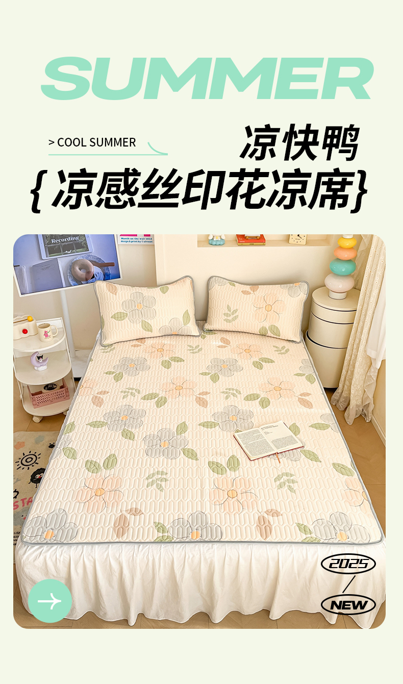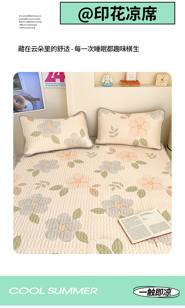 商品名称:川悦生活 2025新款小阪凉感丝印花凉席 悦色花园