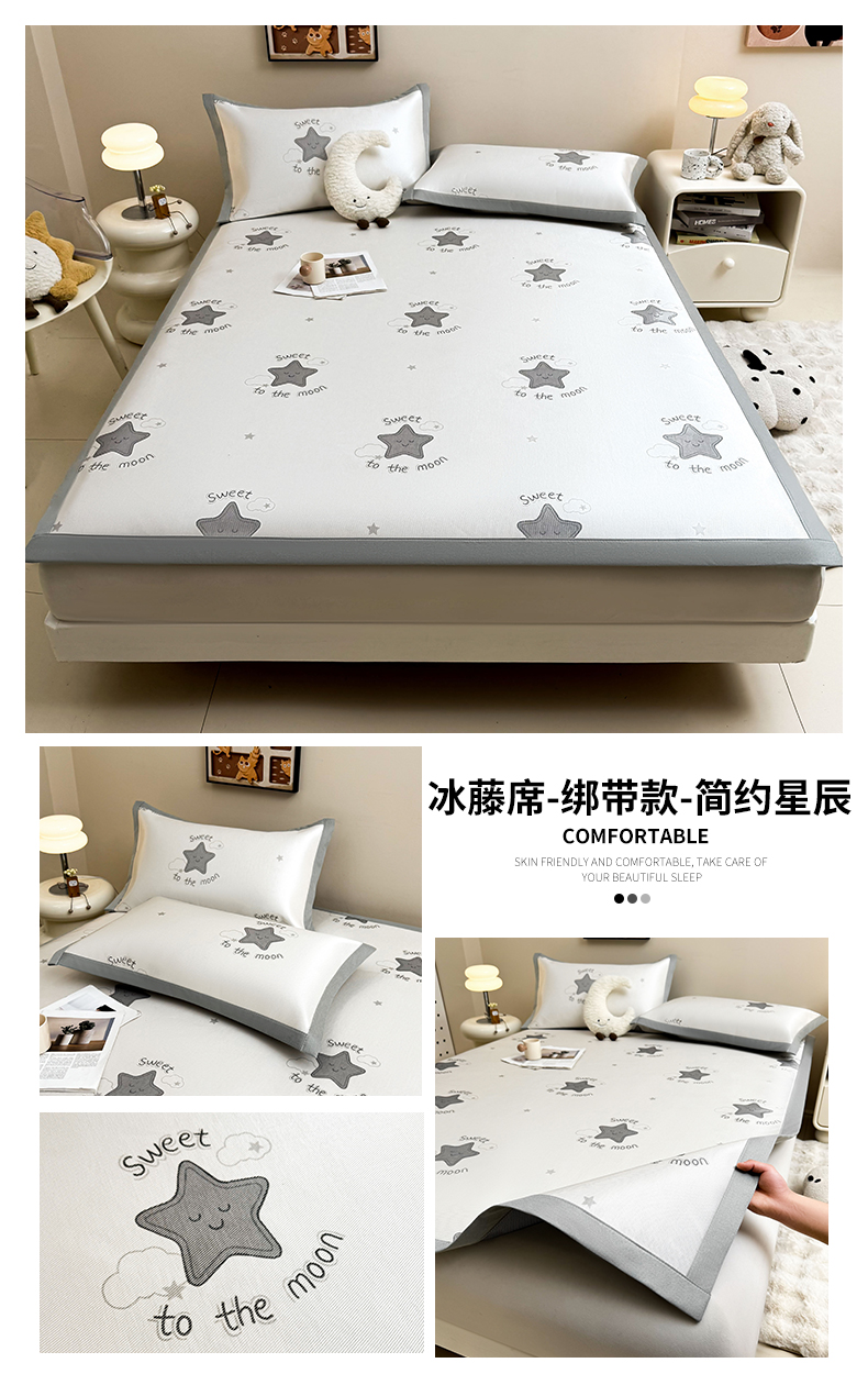 当前位置: 91家纺网 > 商品网购 > 床上用品 > 凉席 > 凉席套件 > 雯豆2025夏季新品冰藤印花凉席三件套平铺绑带款冰丝凉席三件套 冰藤席-绑带款-简约星辰