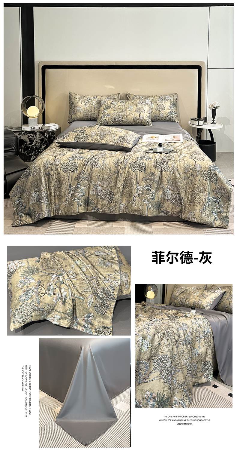 笙意家纺 2025新款水洗真丝数码印花暗盒款夏被 菲尔德-灰