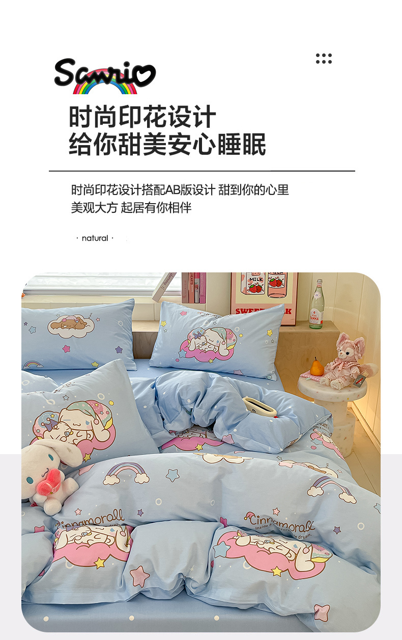 当前位置: 91家纺网 > 商品网购 > 床品套件 > 四件套 > 全棉普通四件套 > 博雅 2025新款三丽鸥卡通全棉印花小版四件套 彩色星星玉桂狗