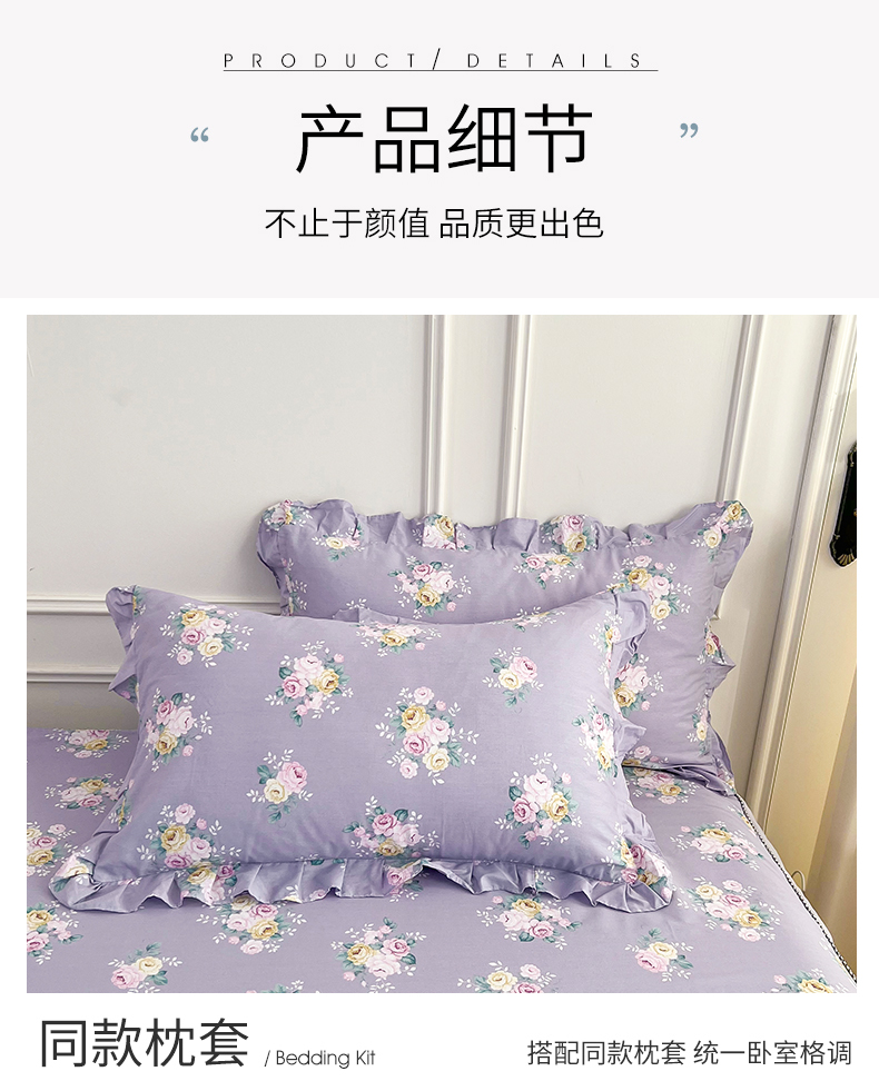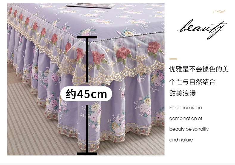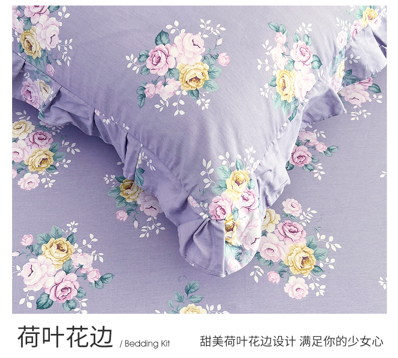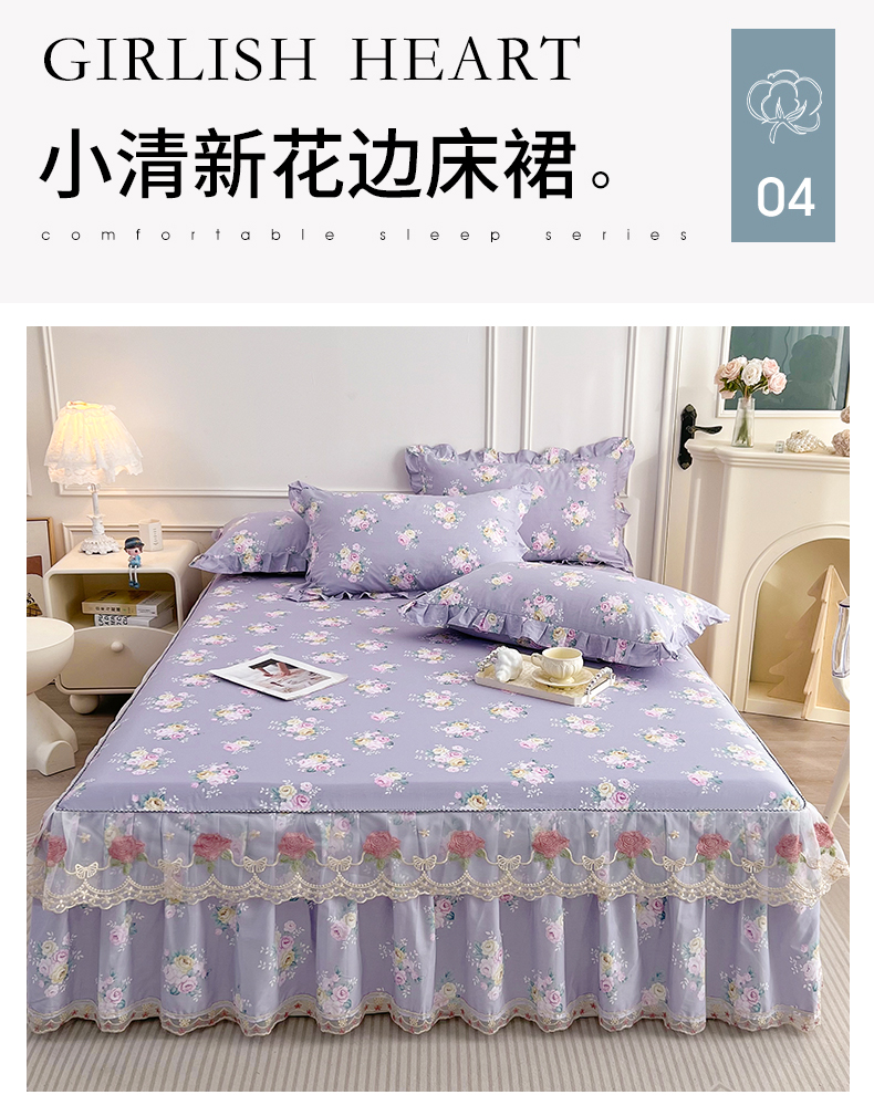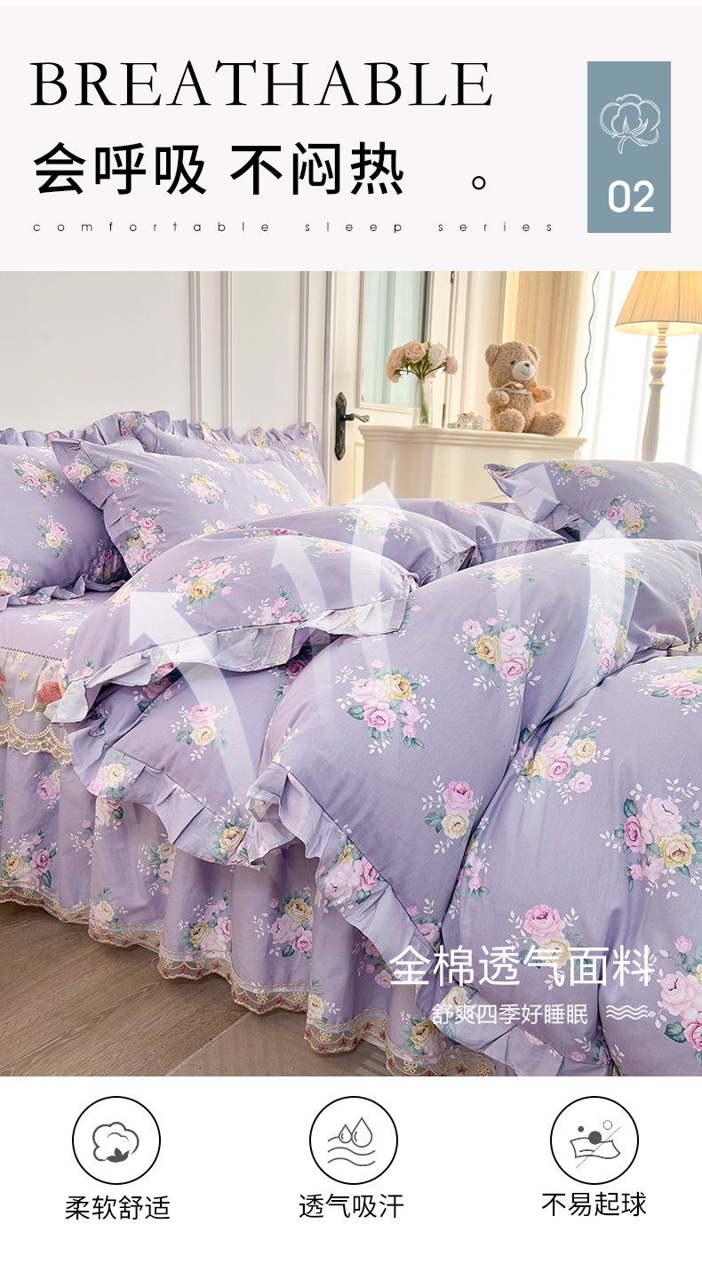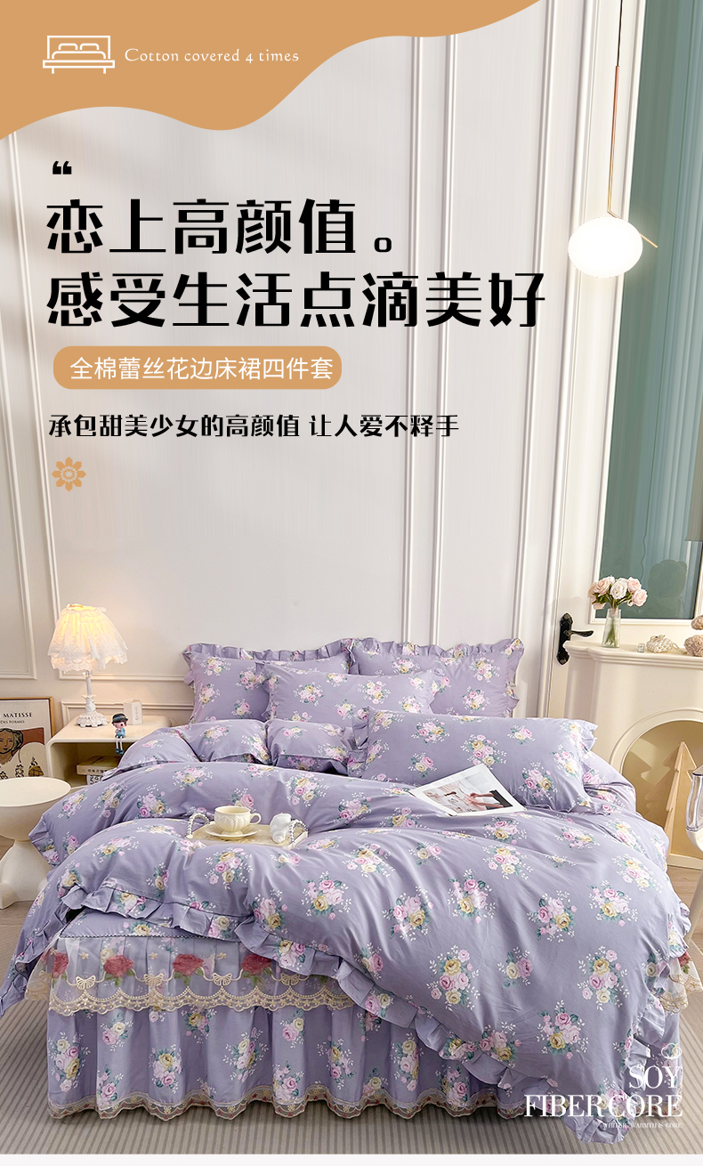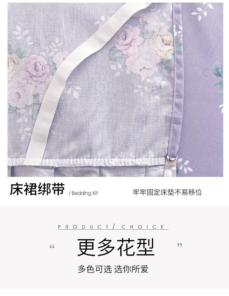 当前位置: 91家纺网 > 商品网购 > 床品套件 > 四件套 > 全棉普通四件套 > 十个点 2025新款全棉纯棉蕾丝花边床裙四件套 花小莱-紫