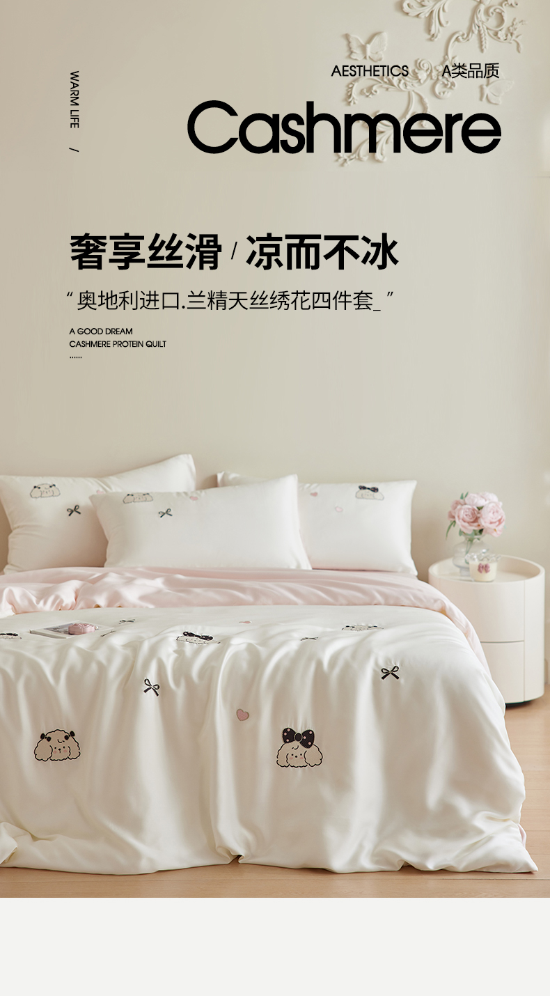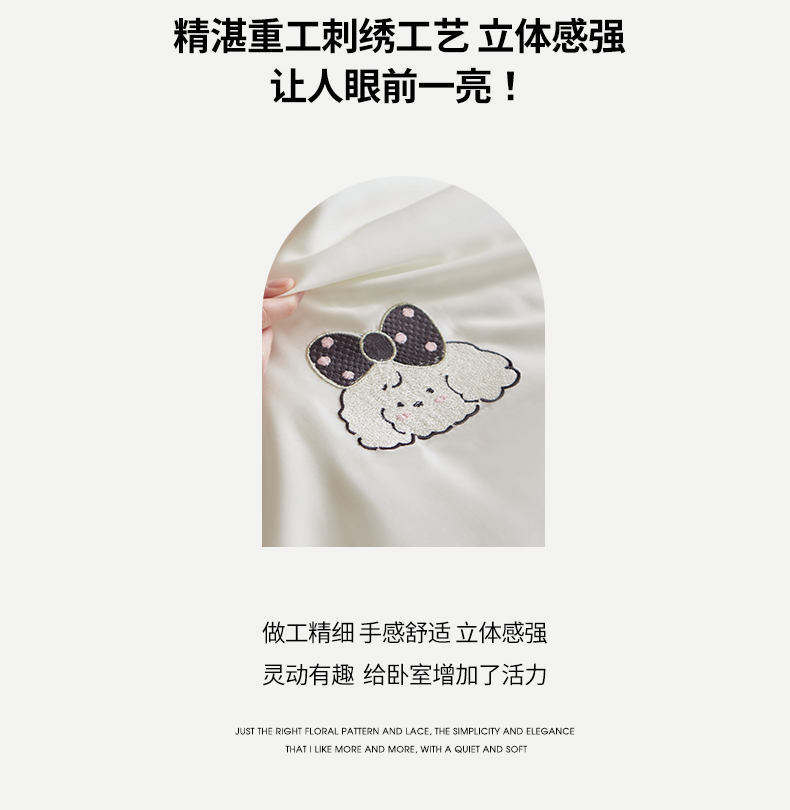 当前位置: 91家纺网 > 商品网购 > 床品套件 > 四件套 > 莱赛尔四件套 > 风向标2025新款60S兰精天丝绣花四件套 萝莉泰迪狗