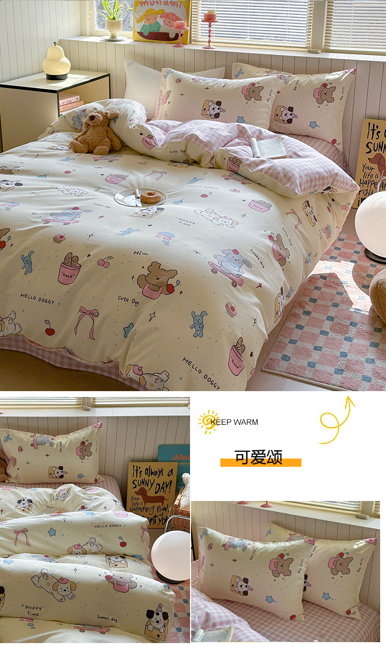 (总)麦伦家居 2026春夏新品13372全棉卡通小清新四件套,春日花语,焦糖小熊,笔记本,宾果时光,果子象,含羞草,蝴蝶结花朵粉,机灵猫,咖啡猫,快乐小星星,蕾丝小兔,漫漫花香,莓果熊,平安狗狗,时光里,线条汪汪,小玫瑰紫,紫樱桃