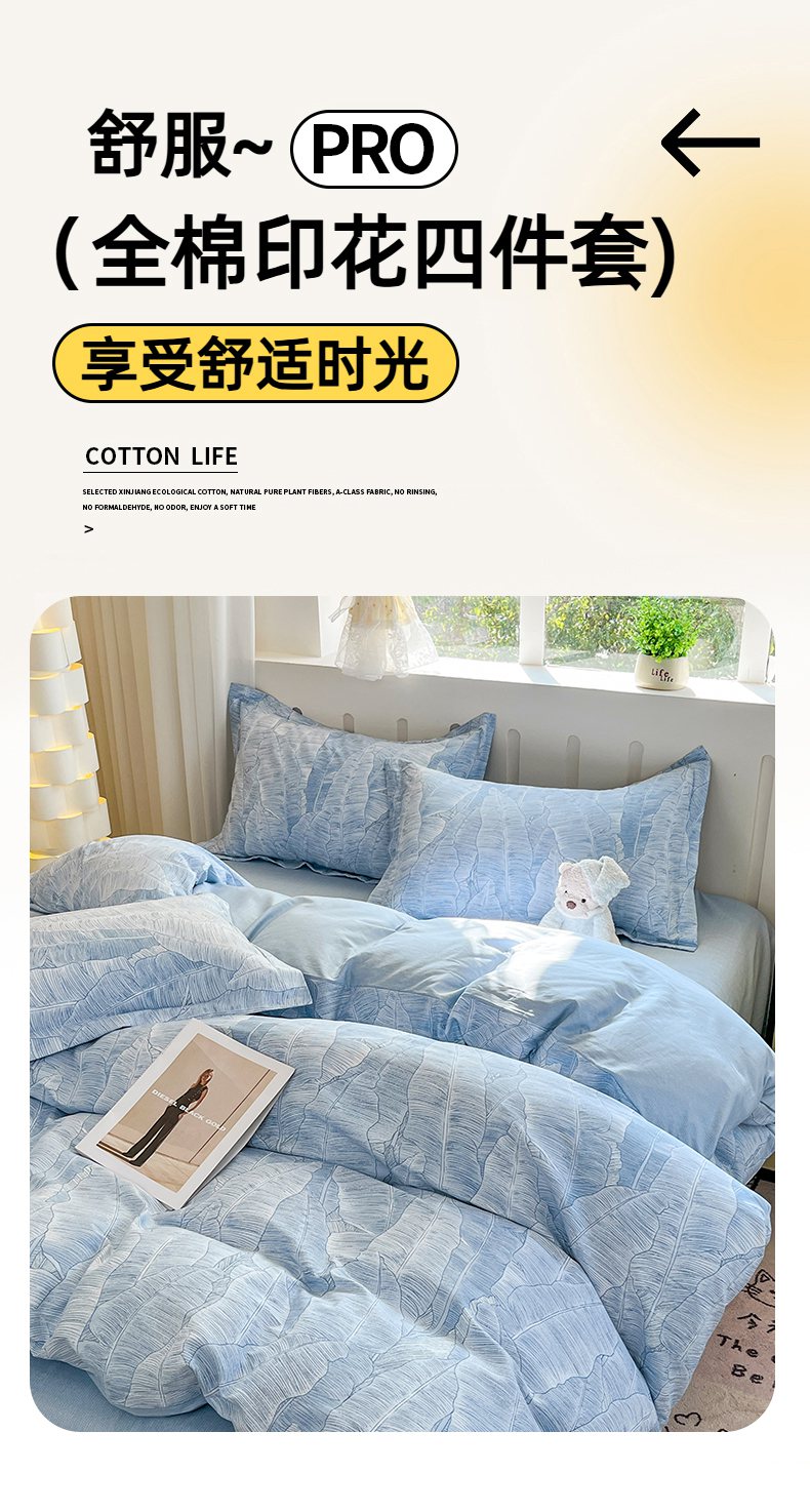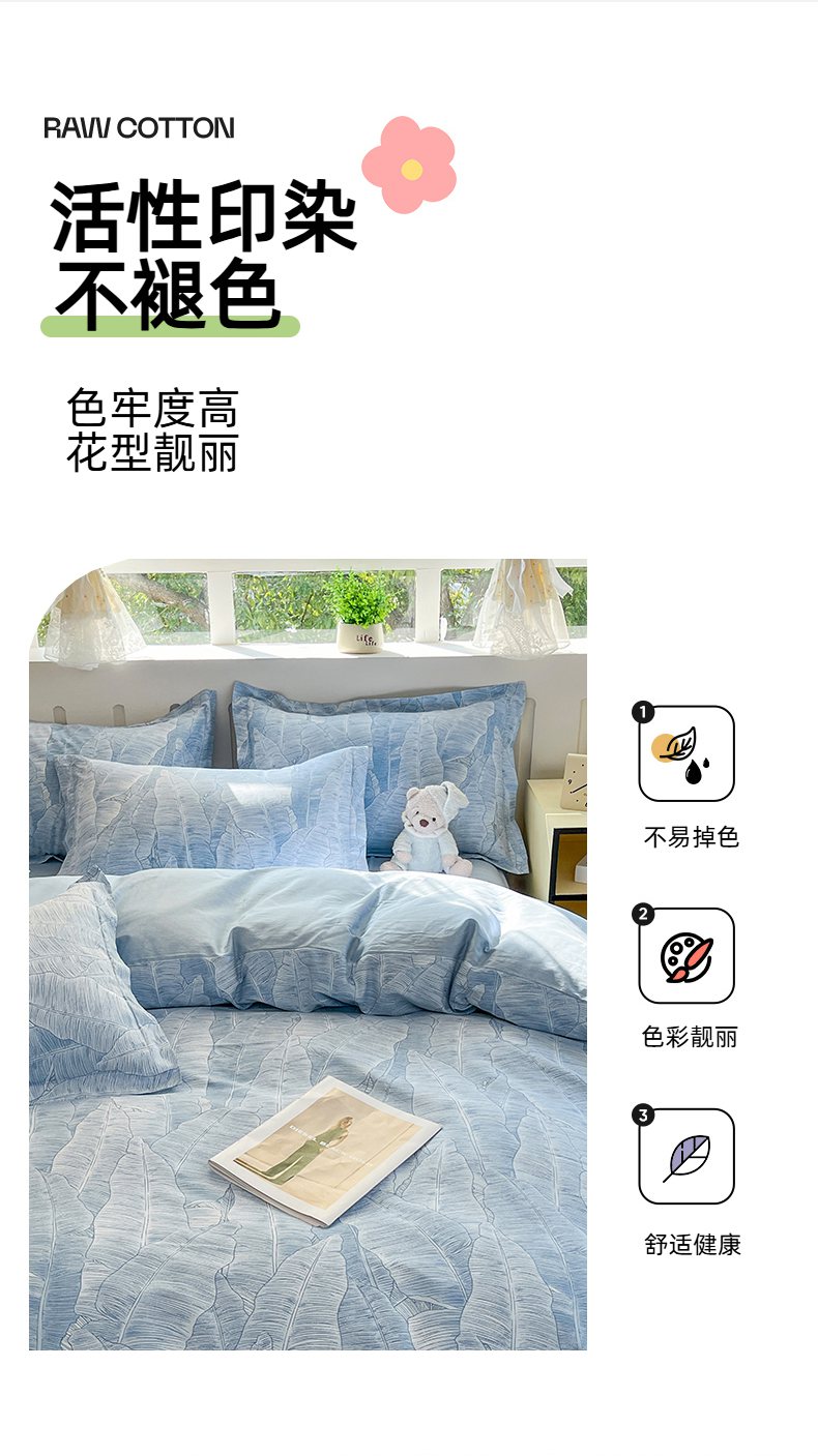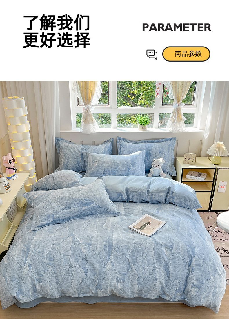 当前位置: 91家纺网 > 商品网购 > 床品套件 > 四件套 > 全棉普通四件套 > 大吉 2025新款100全棉纯棉喷气小清新被套四件套纯棉三件套床笠四件套单被套单枕套 雨落芭蕉