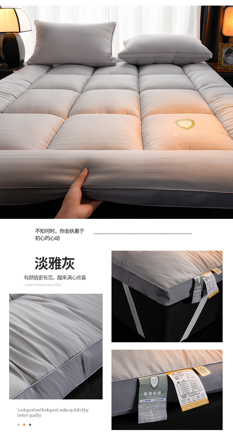 (总)羽涵家纺 2025新款亲肤磨毛床垫,淡雅灰,珍珠白