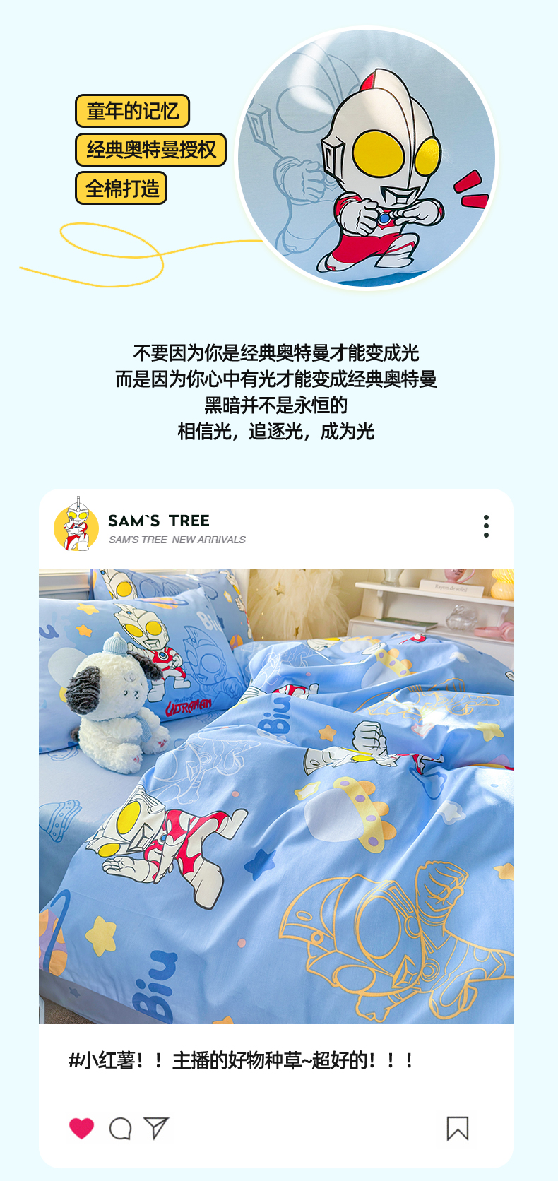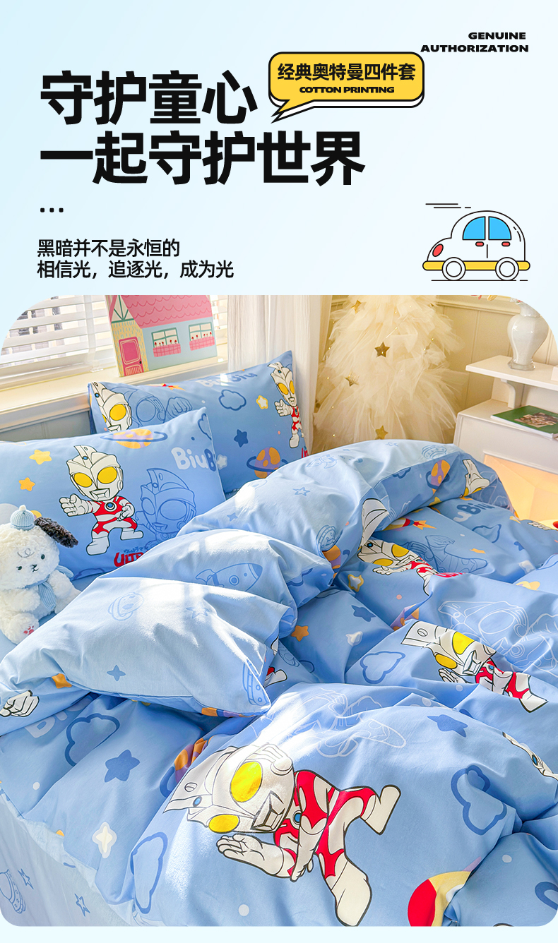 当前位置: 91家纺网 > 商品网购 > 床品套件 > 四件套 > 全棉普通四件套 > 名兮家居 2025新款正版授权经典奥特曼全棉四件套【含防伪标】 光线王子