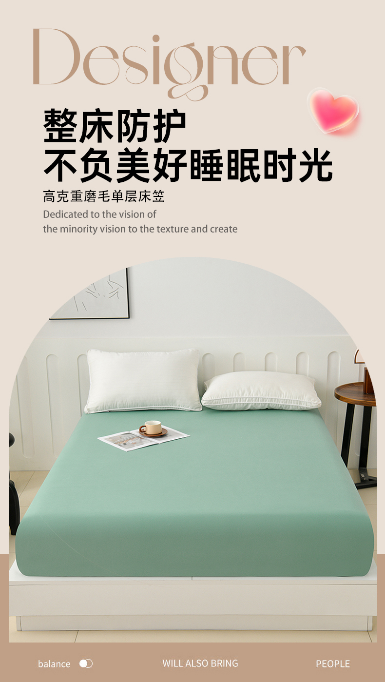 商品名称:一禾 90g高克重磨毛单床笠-特殊跨境尺寸可定制 浅绿