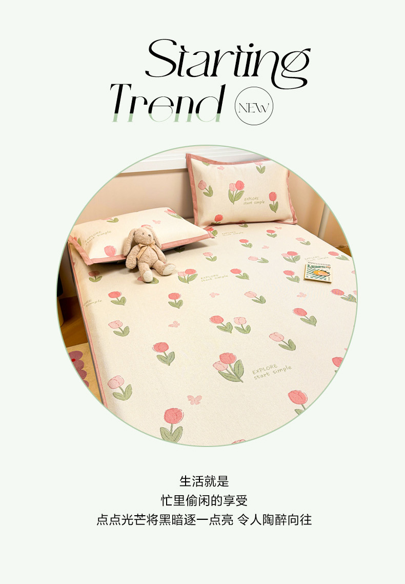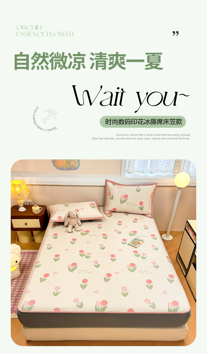 (总)沐慕 2025新款高克重600D冰丝印花冰藤床笠