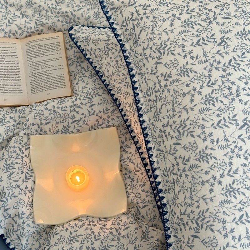 当前位置: 91家纺网 > 商品网购 > 床品套件 > 四件套 > 全棉普通四件套 > 2025新款工艺款全棉双层纱小清新贝壳边四件套 涟漪