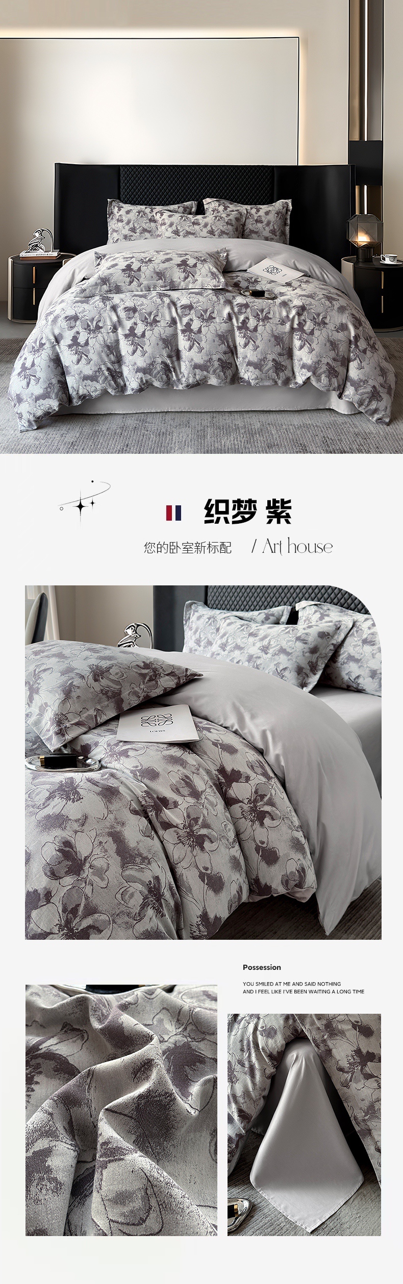 (总)朵希曼 2025新款轻奢全棉提花系列四件套,蝶恋-粉,极简深蓝,南枝-蓝,晚棠 红,知画-灰,织梦 紫