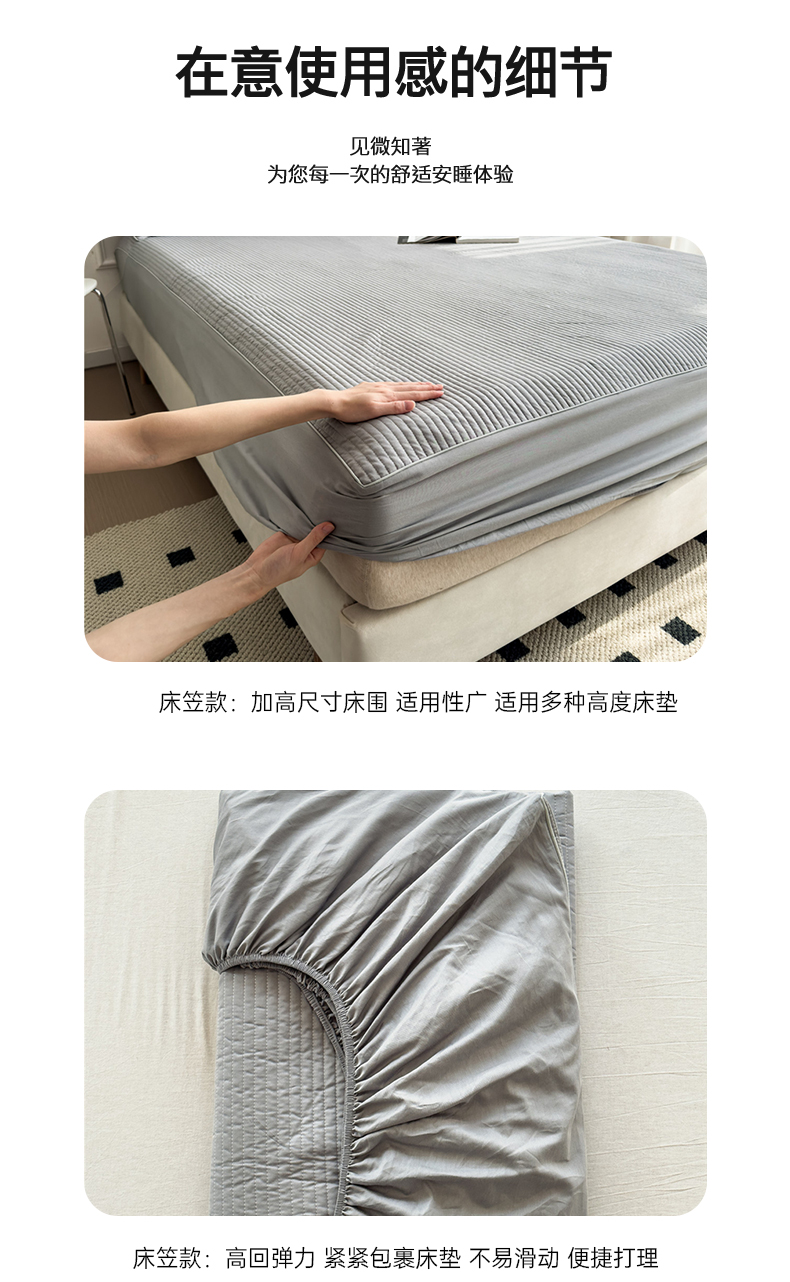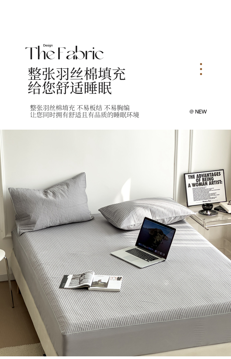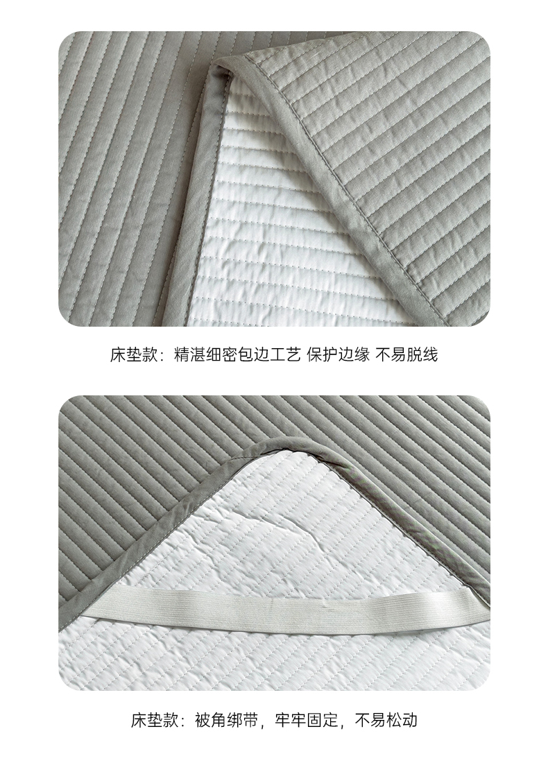 (总)安芯丝60S全棉夹棉床笠 抗菌防螨,白色,灰色