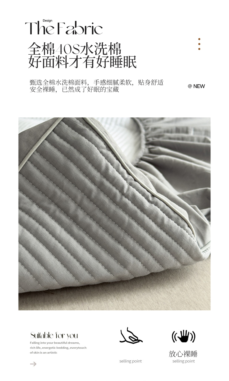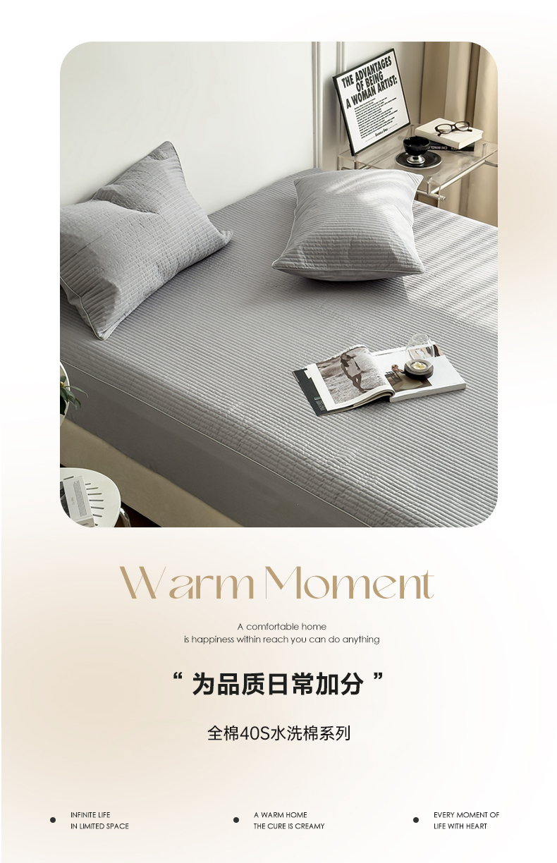 商品名称:法芙娜家纺 2025新款全棉40S水洗棉床笠 浅灰
