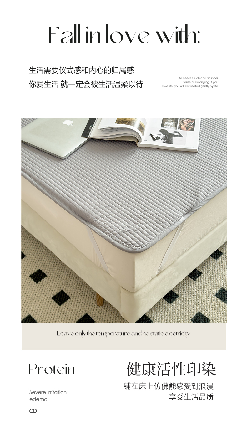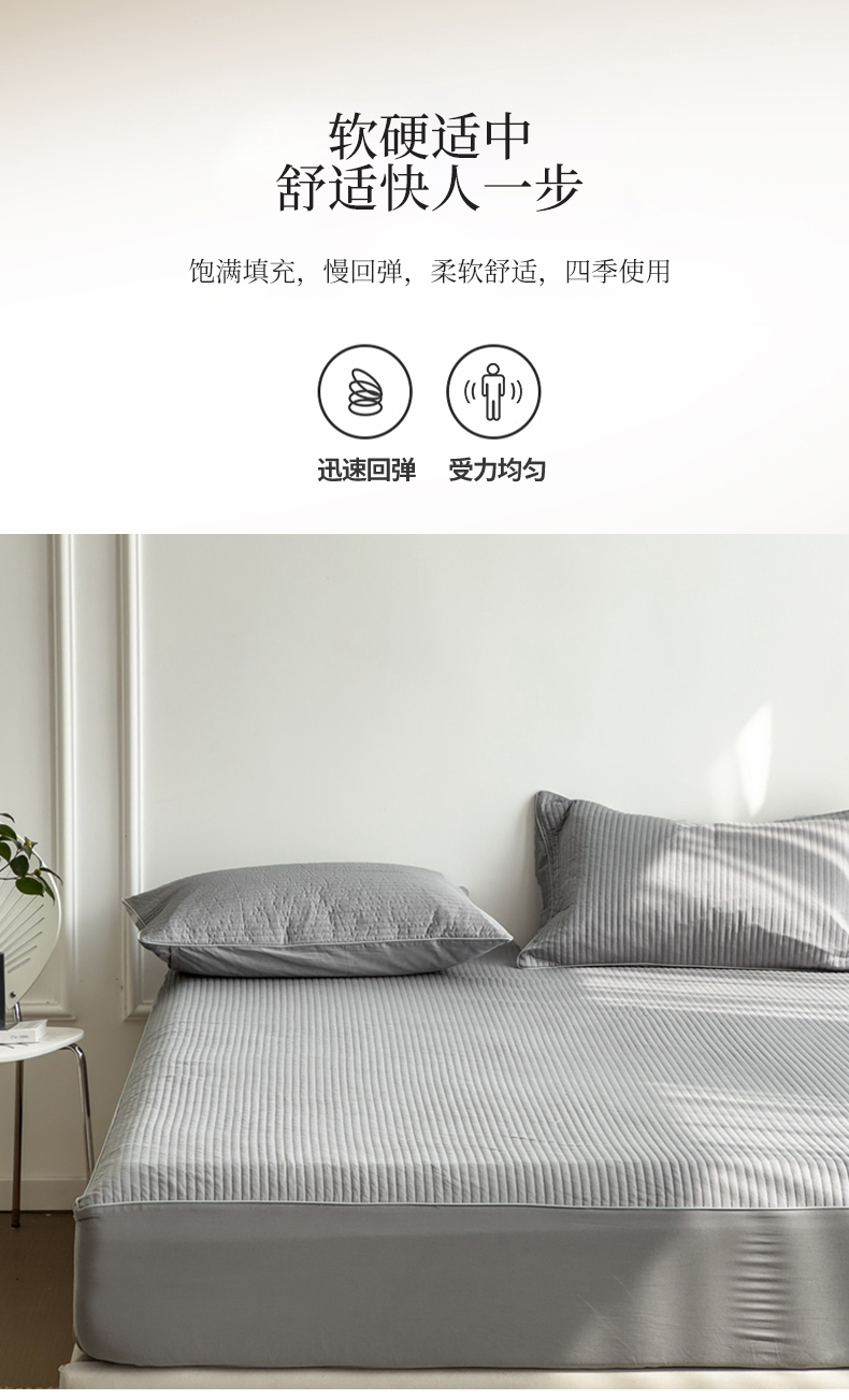 (总)法芙娜家纺 全棉40S斜纹13372水洗棉密道床垫,白色,粉色,抹茶,浅灰,深灰