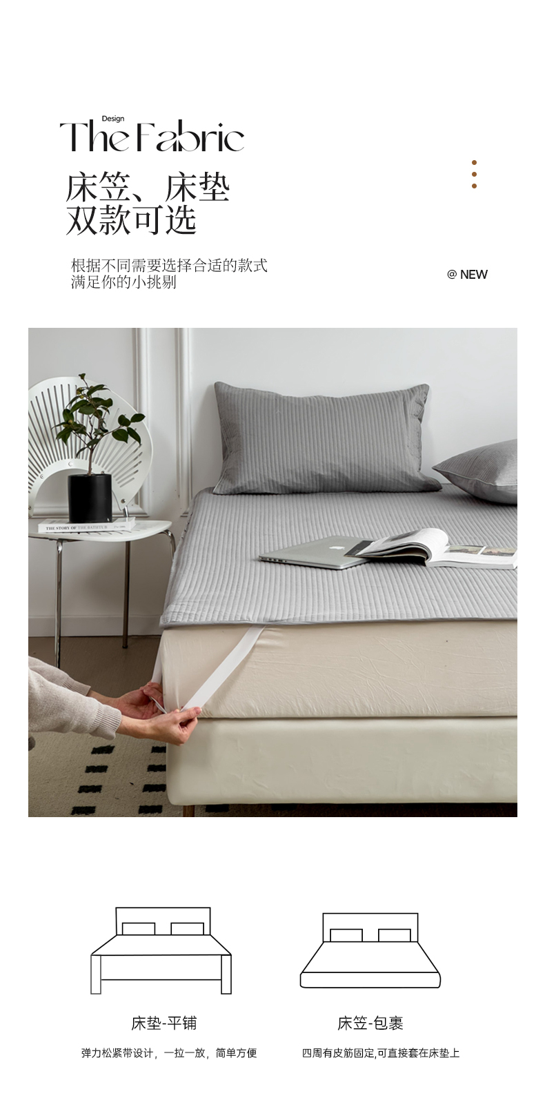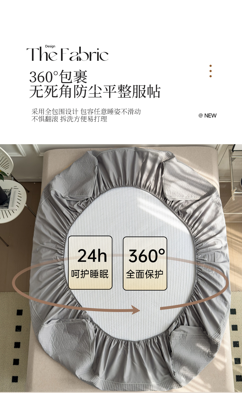 法芙娜家纺 2025新款全棉40S水洗棉床笠 浅灰