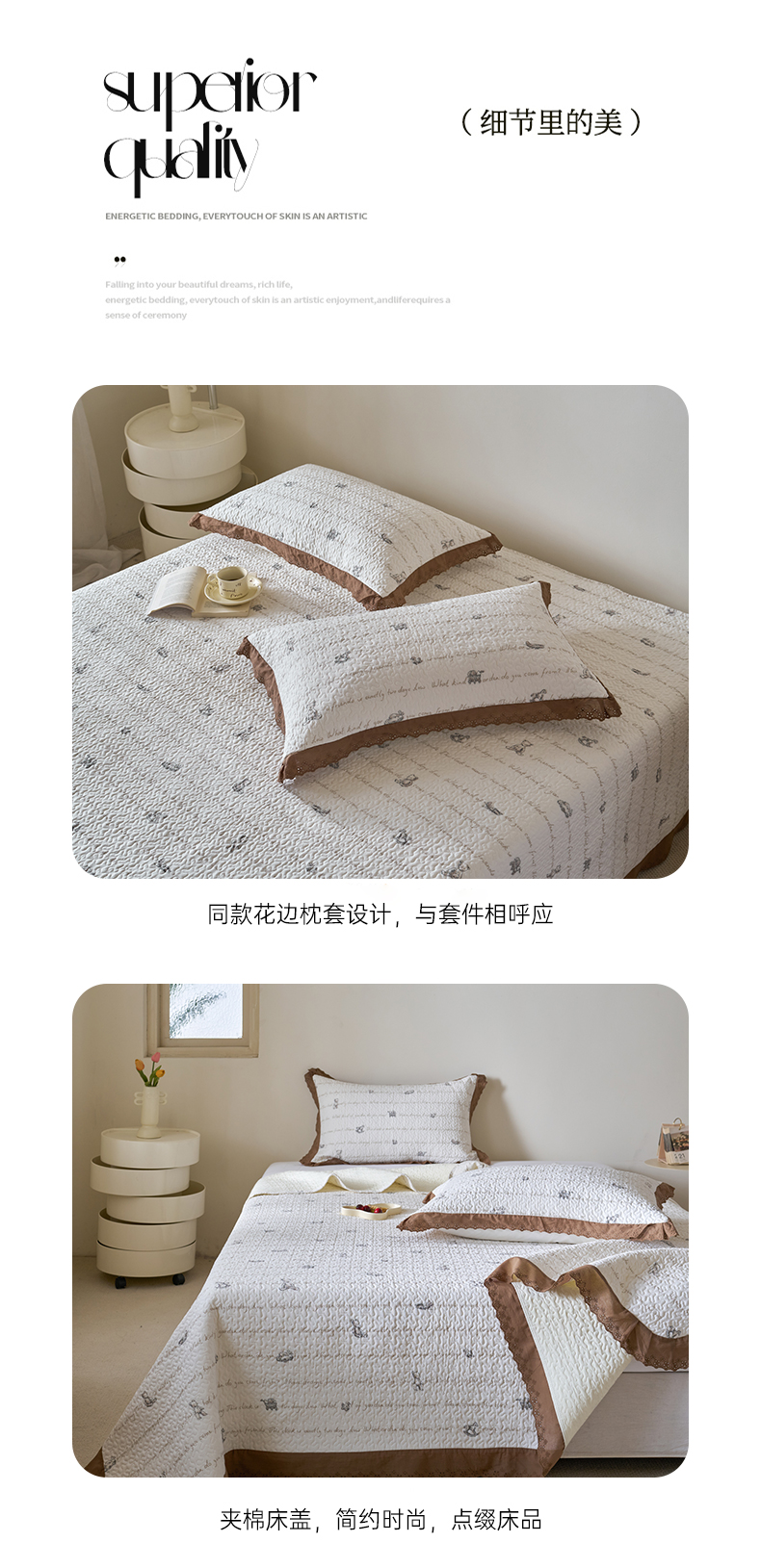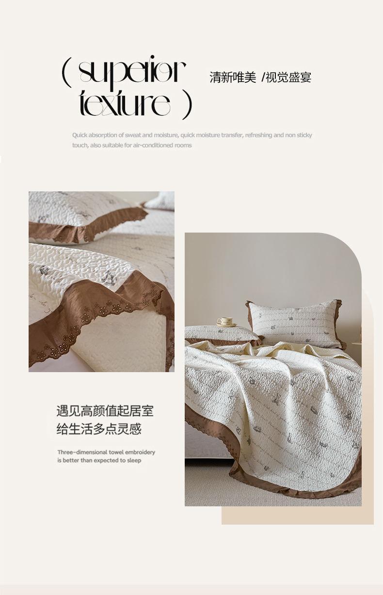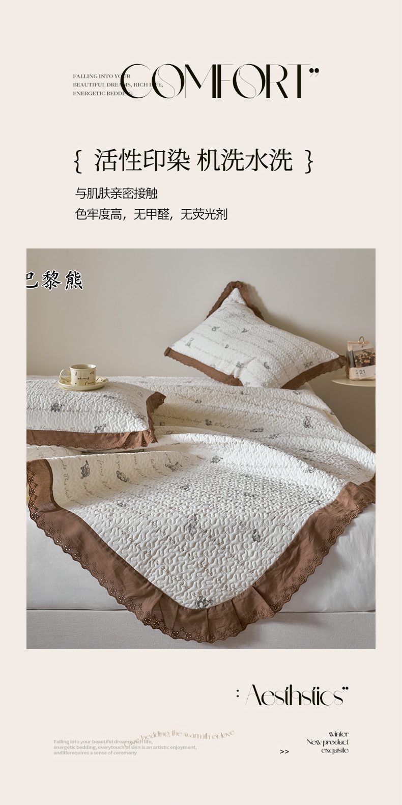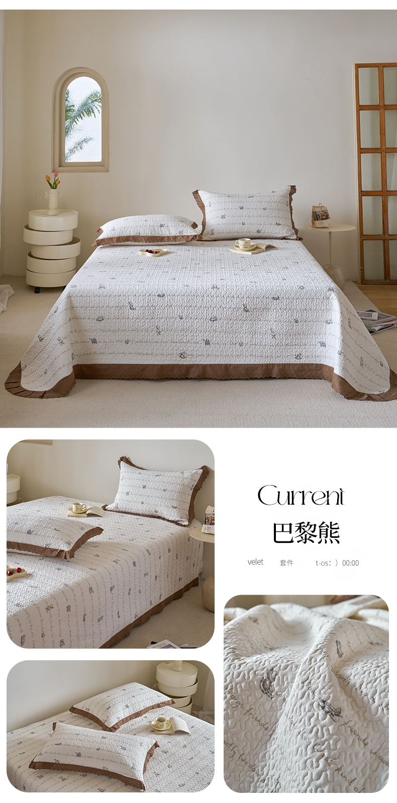 商品名称:漫仙阁家纺 2025新款热卖法式花边款加厚床盖床盖三件套 巴黎熊