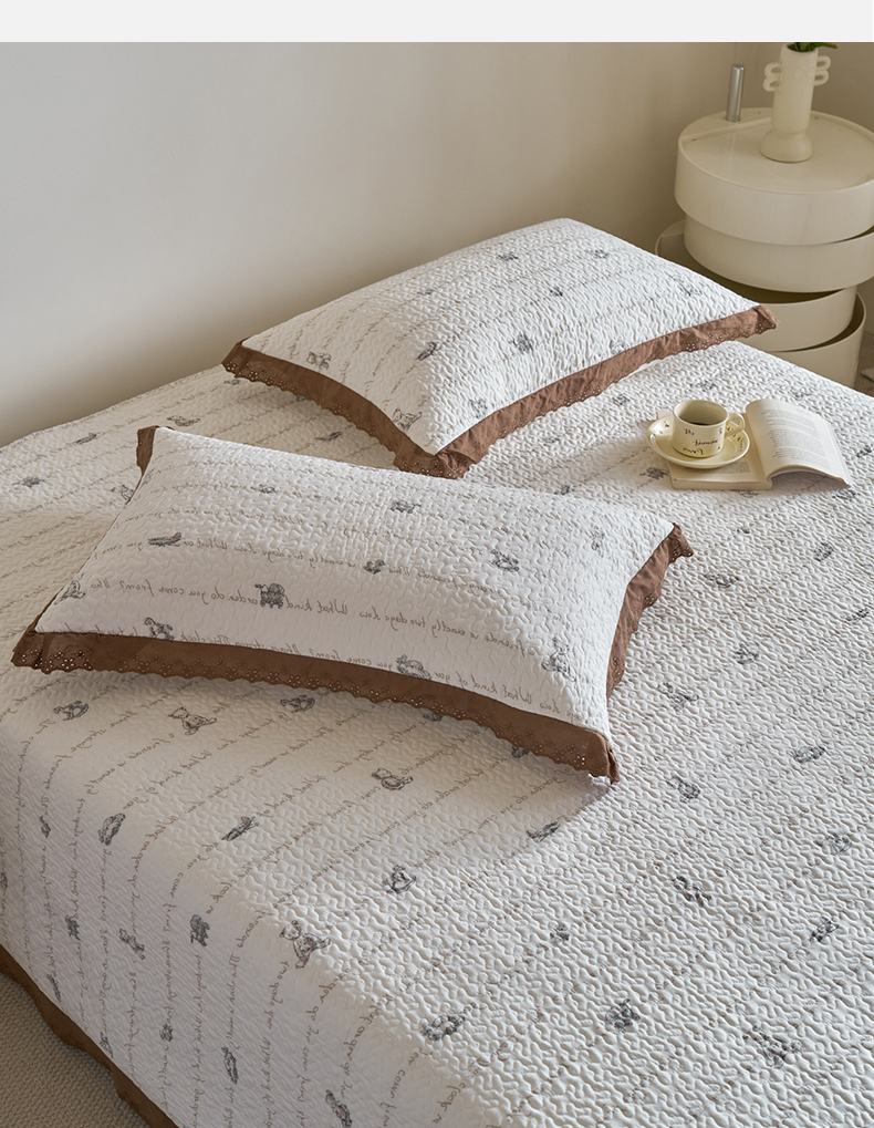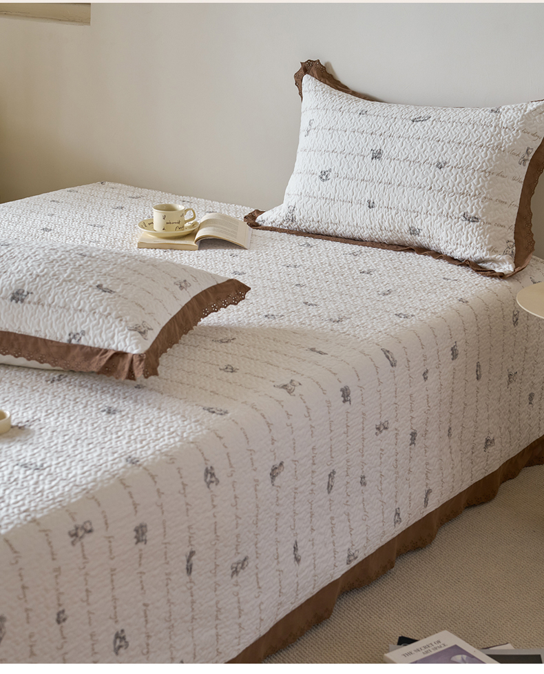 漫仙阁家纺 2025新款热卖法式花边款加厚床盖床盖三件套 巴黎熊