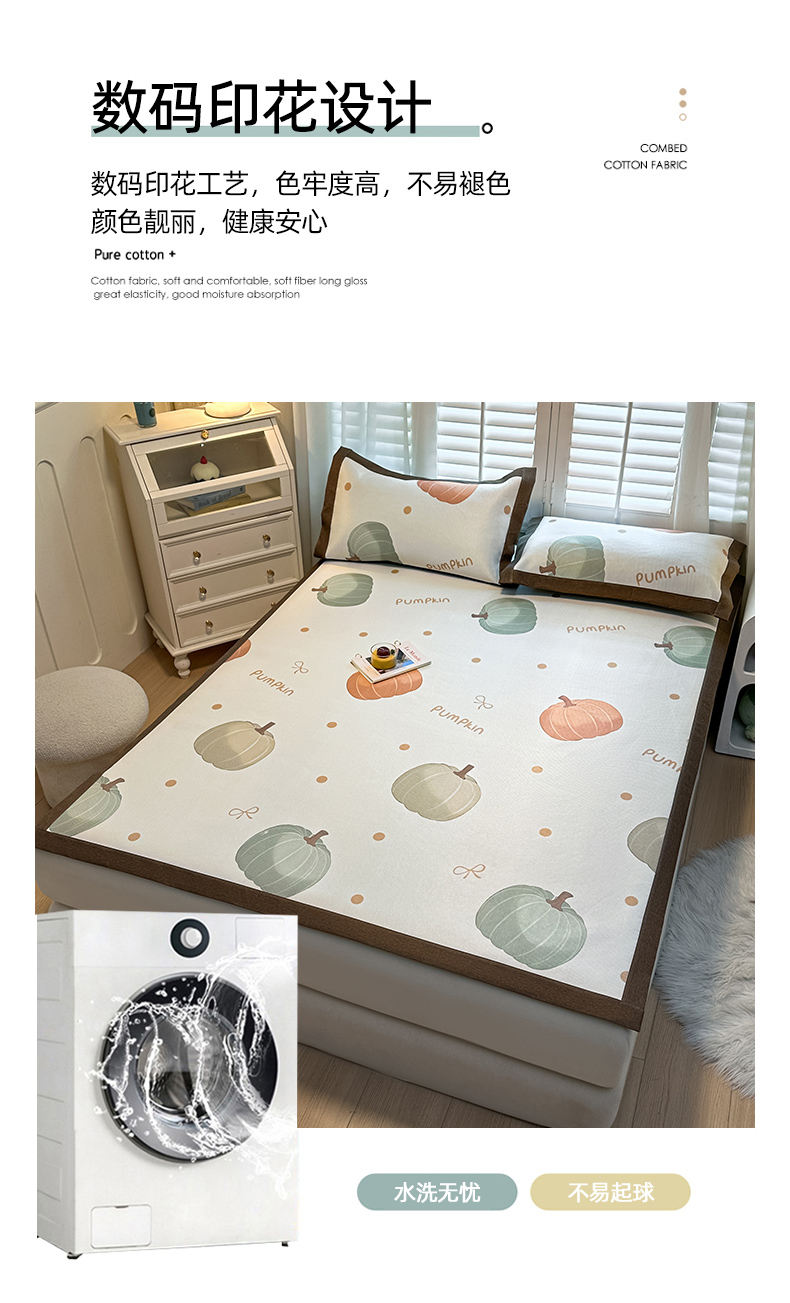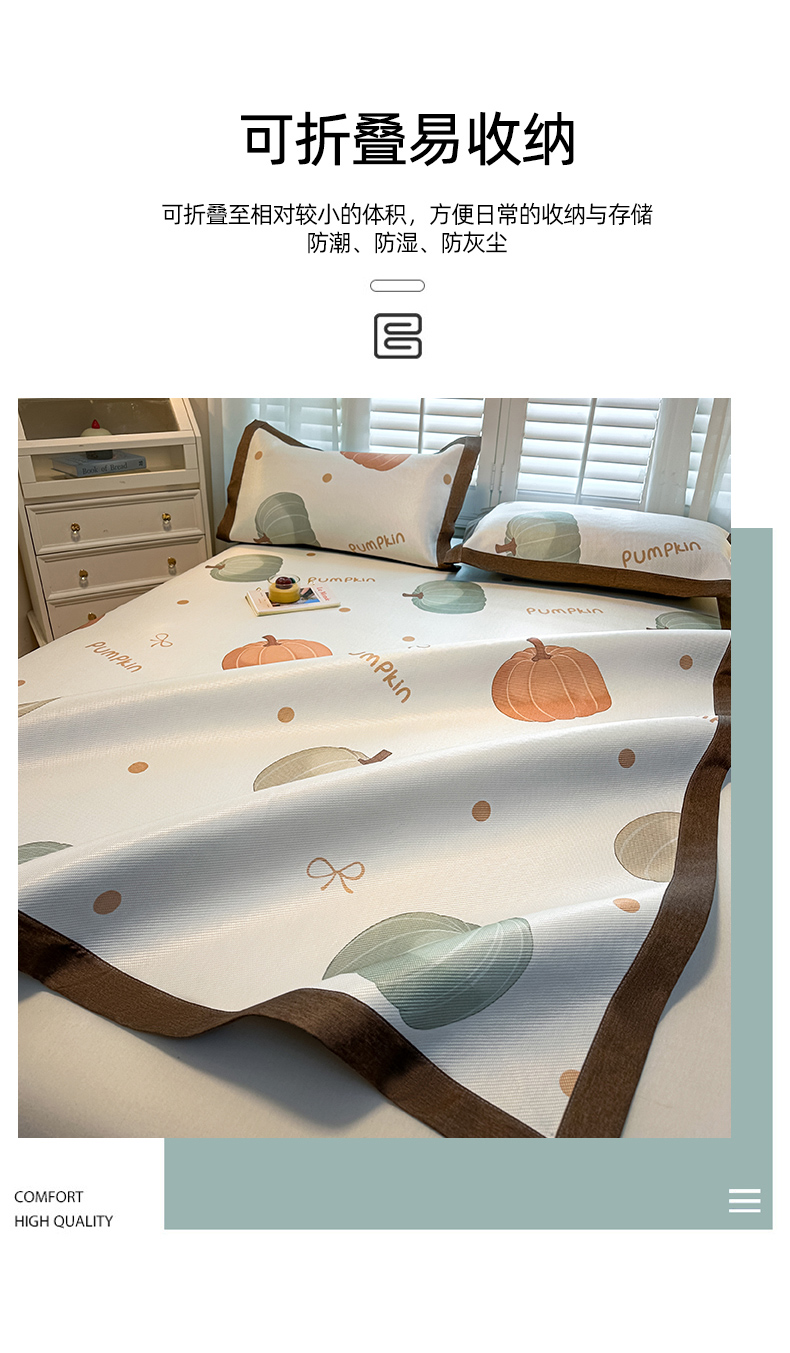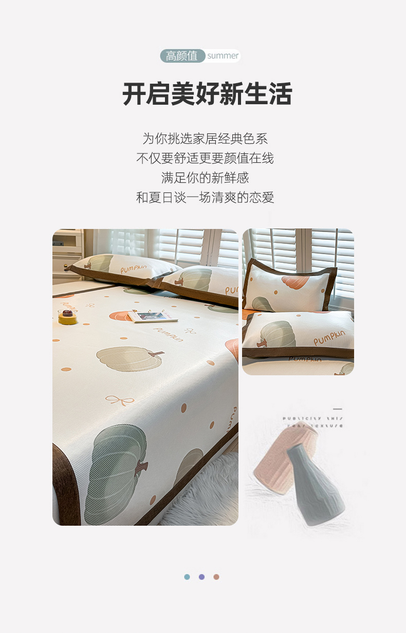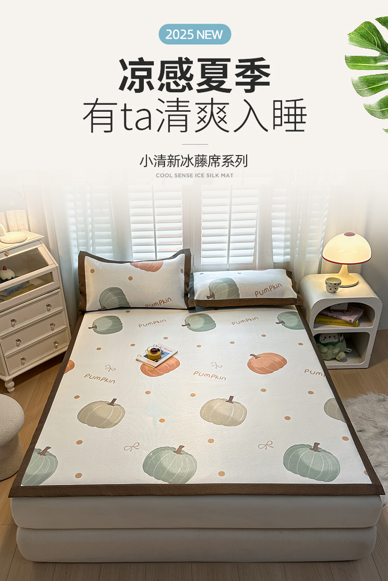 当前位置: 91家纺网 > 商品网购 > 床上用品 > 凉席 > 凉席套件 > 席佬大 2025新款高克重卡通数码印花冰藤席床席床笠款 波点南瓜-平铺款