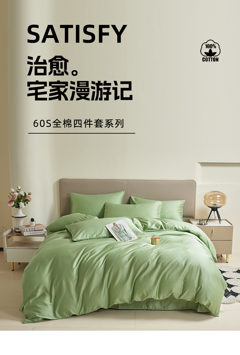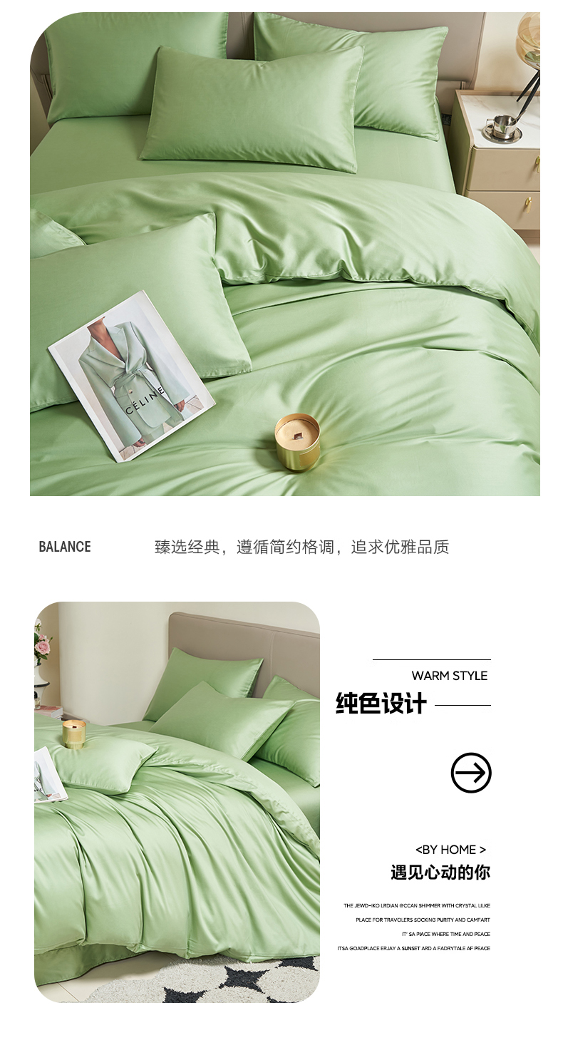 当前位置: 91家纺网 > 商品网购 > 床品套件 > 四件套 > 全棉普通四件套 > 暖芯家纺 2025新款60S黑标全棉四件套 翠微绿