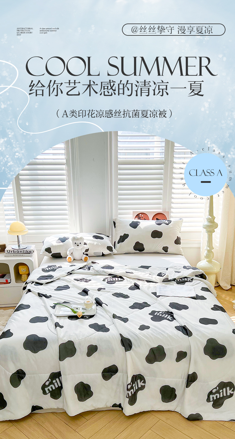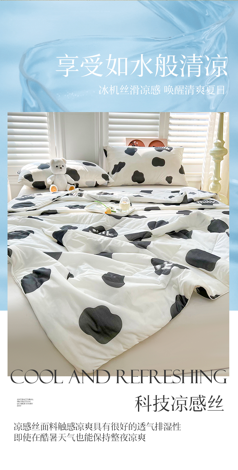 好梦来家纺(原锦茂家纺) 2025新款印花凉感丝抗菌夏被 黑白配