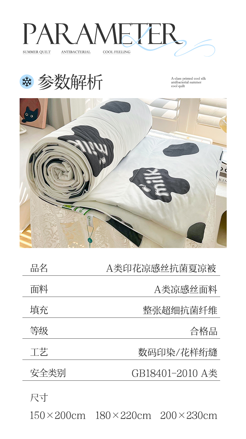 商品名称:好梦来家纺(原锦茂家纺) 2025新款印花凉感丝抗菌夏被 黑白配