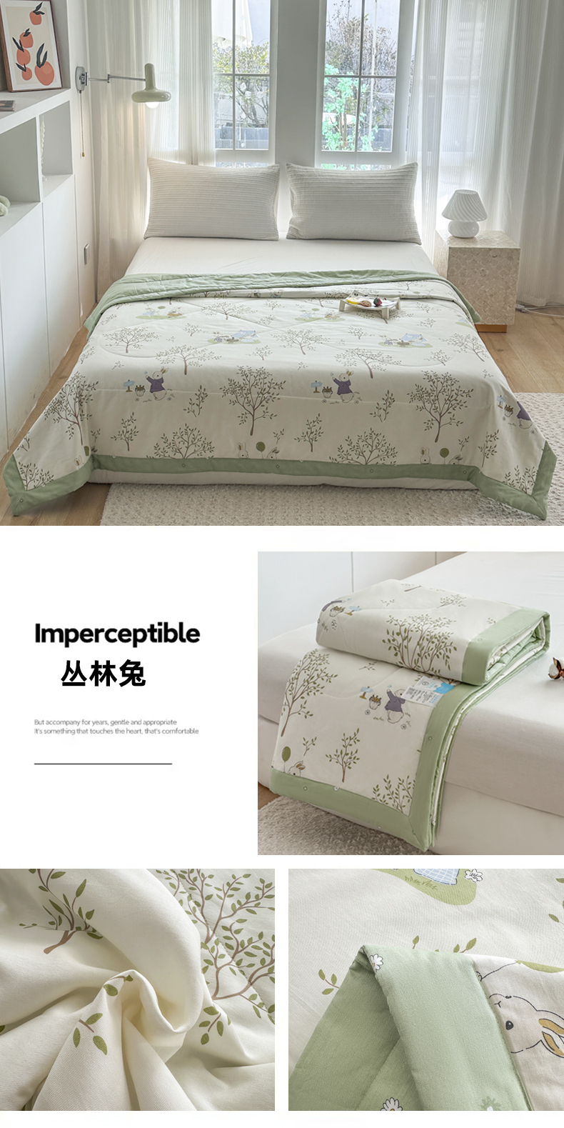 瑜珠家纺 2025新款里外全棉棉花夏被 丛林兔