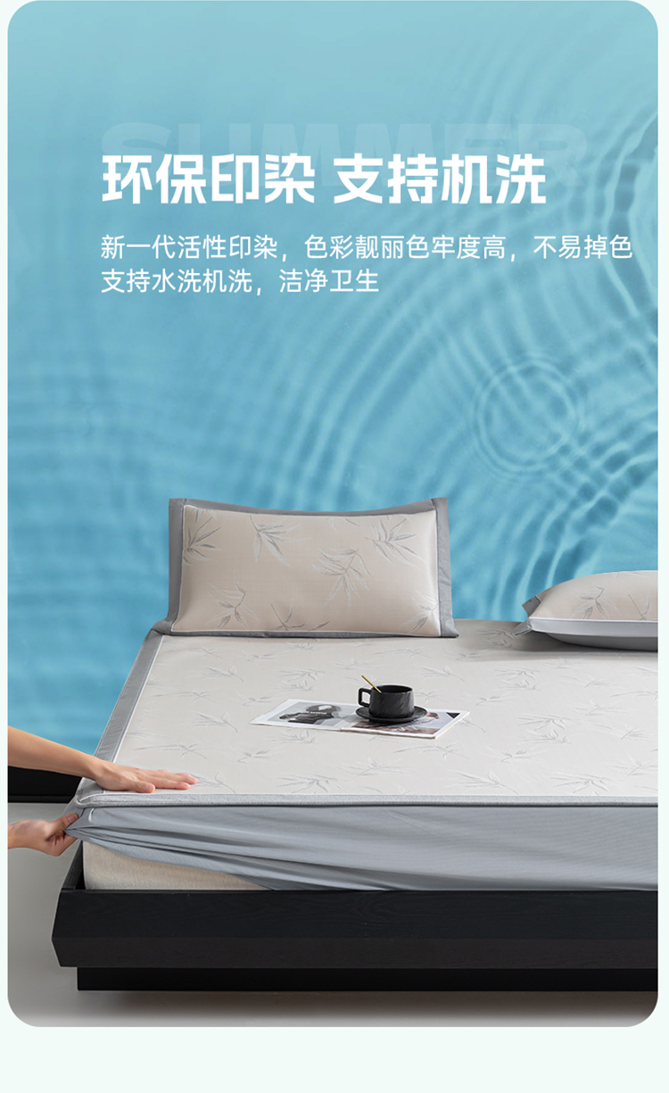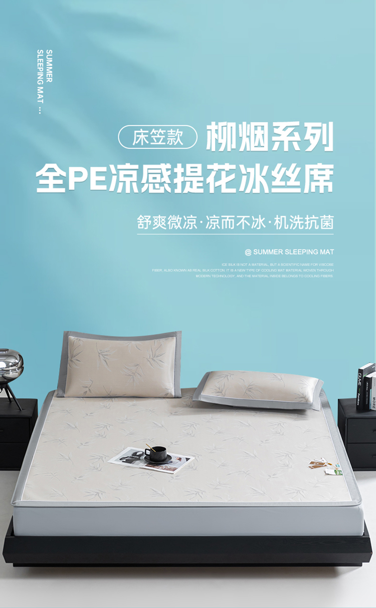(总)2023新款超精密冰丝席-小斜纹系列-床笠款藤席凉席竹席,粉色,蓝色,绿色,银灰