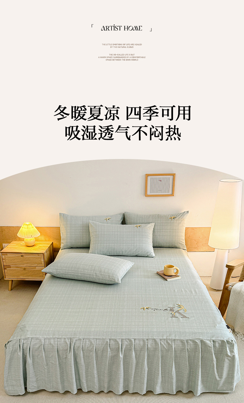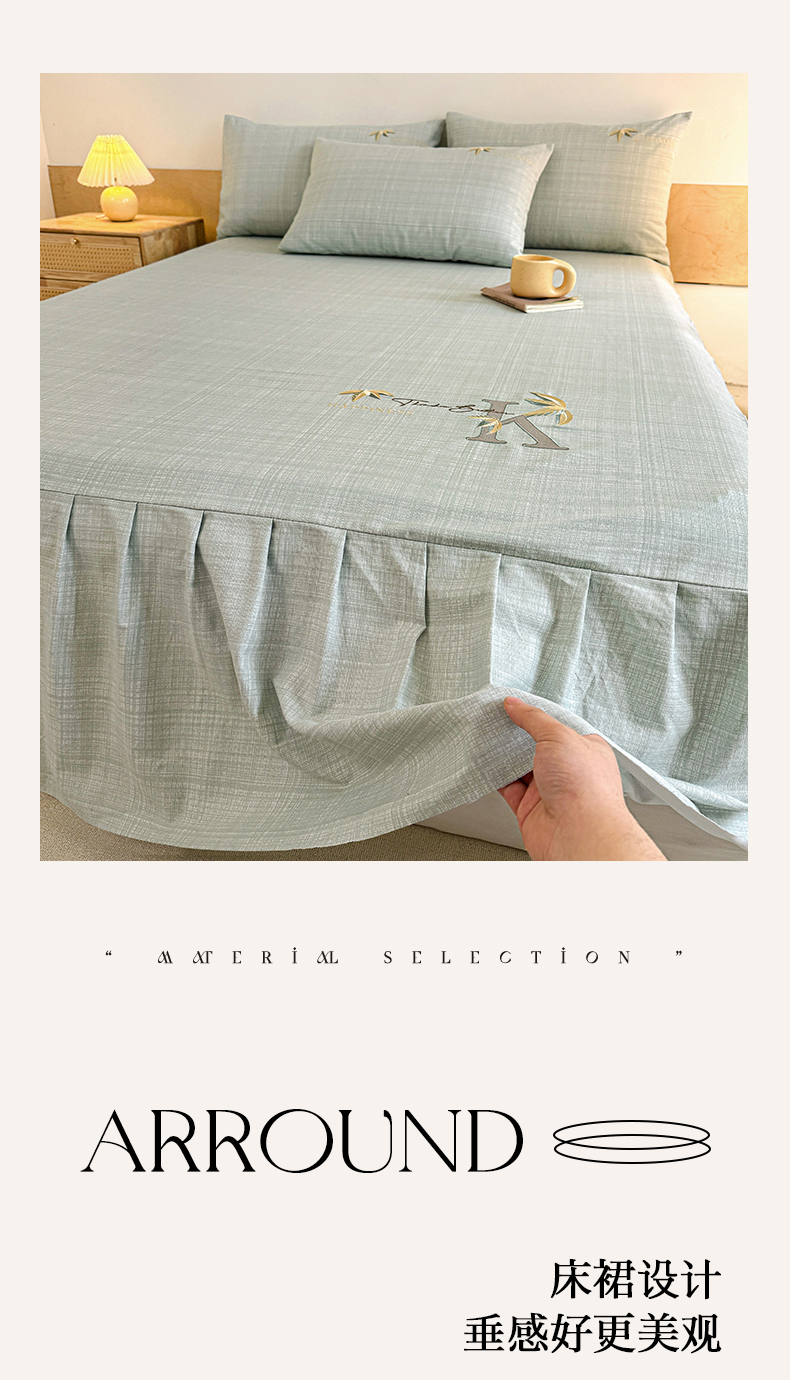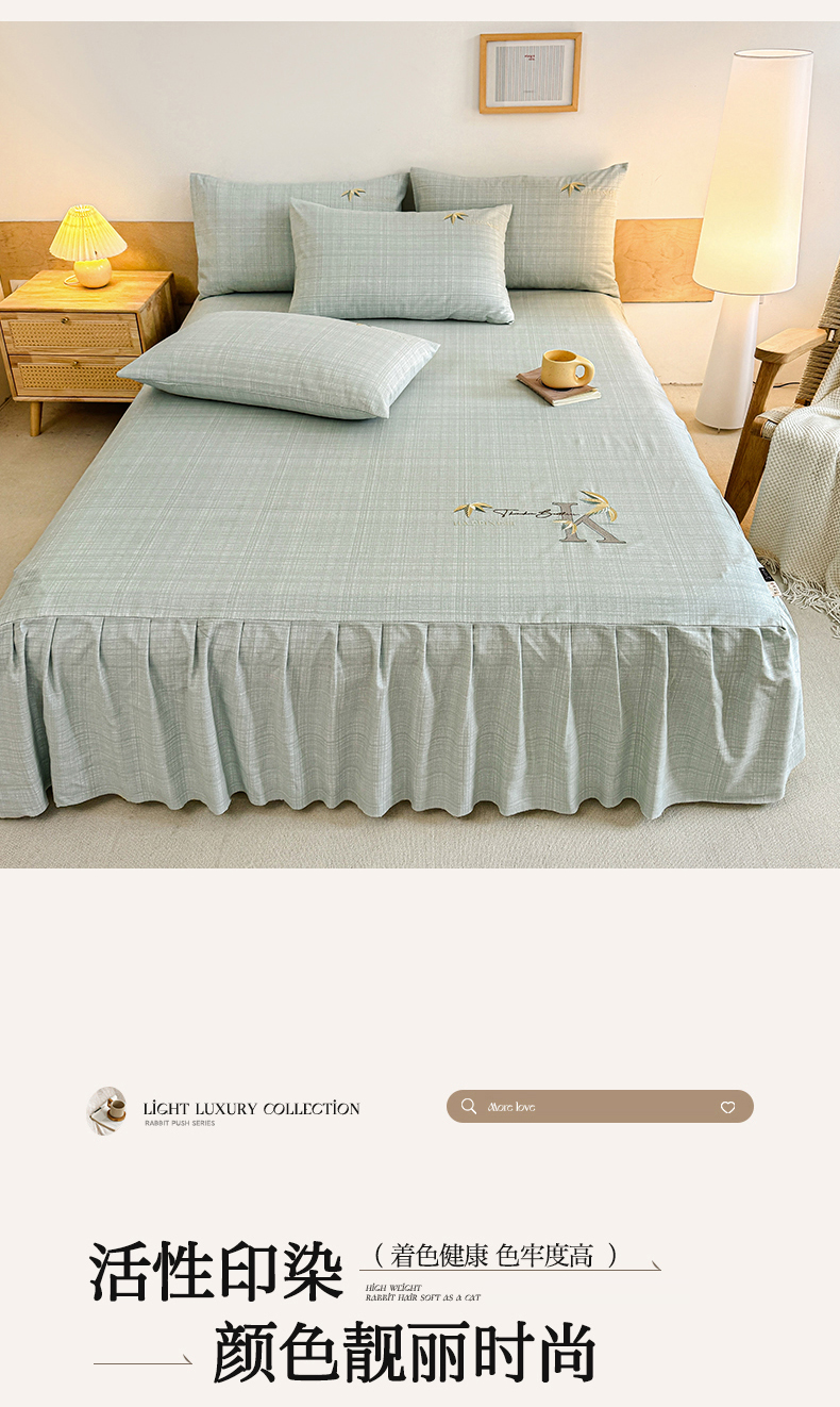 (总)布柔 2025新款加厚刺绣花边夹棉牛奶绒床裙款床笠,麦穗绿,麦穗湖蓝,麦穗灰,麦穗天蓝,麦穗粉