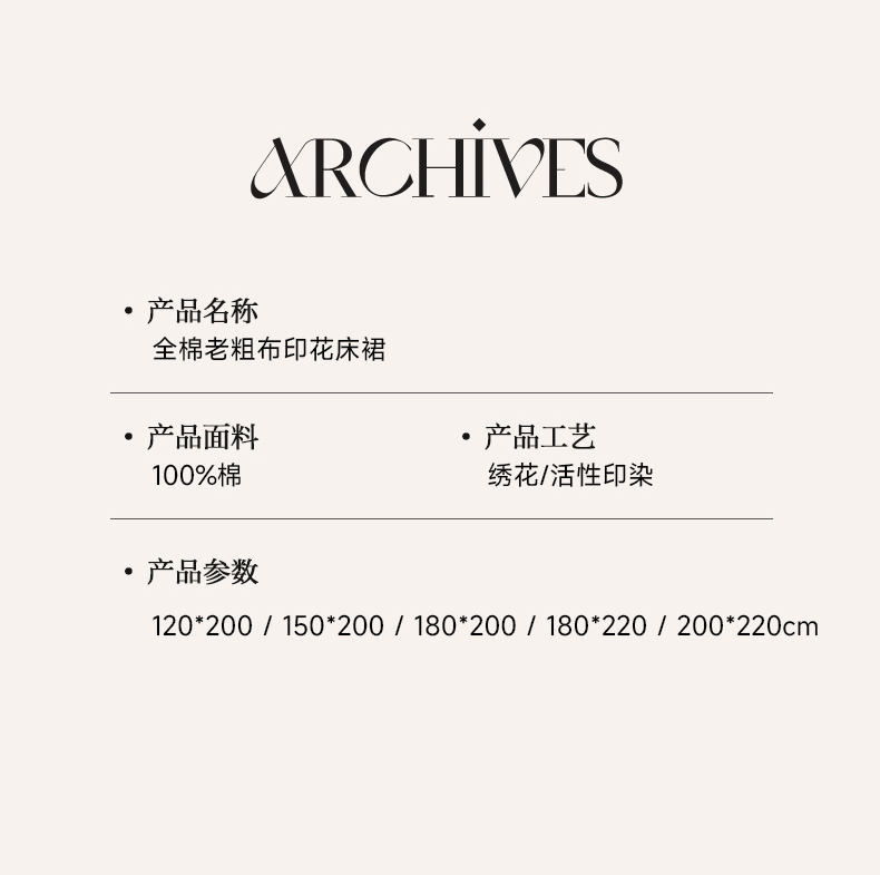 商品名称:布柔 2025新款100%全棉纯棉老粗布绣花印花凉席单品床裙 米多紫