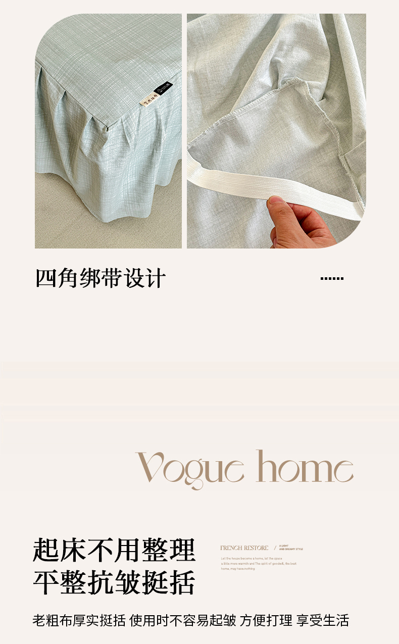 (总)布柔 2025新款高克重双层纱仿麻皱皱纱原麻床笠,泡芙粉,泡芙咖,泡芙蓝