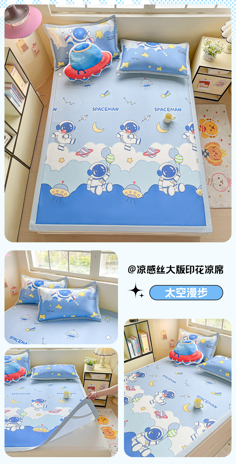 博雅 2025新款独家版权A类大版数码印花1200D冰丝凉席 太空漫步
