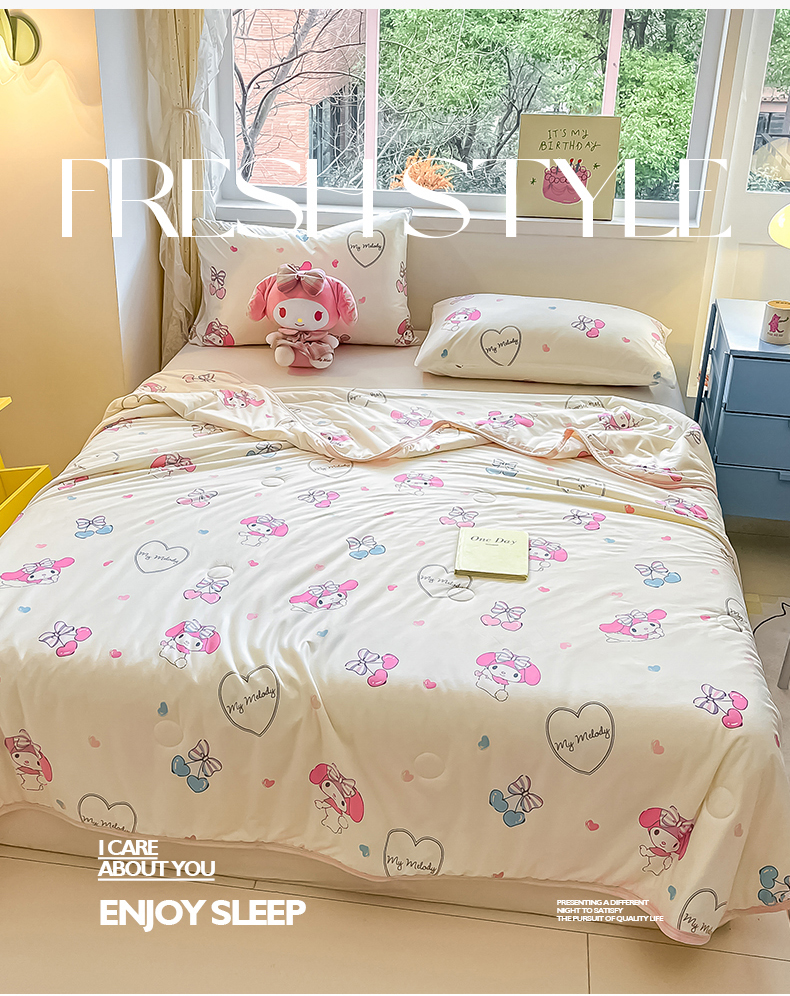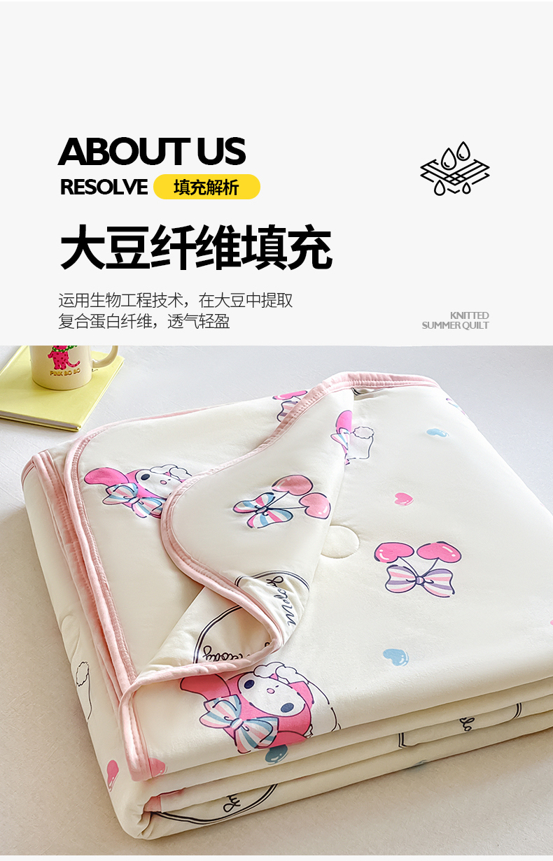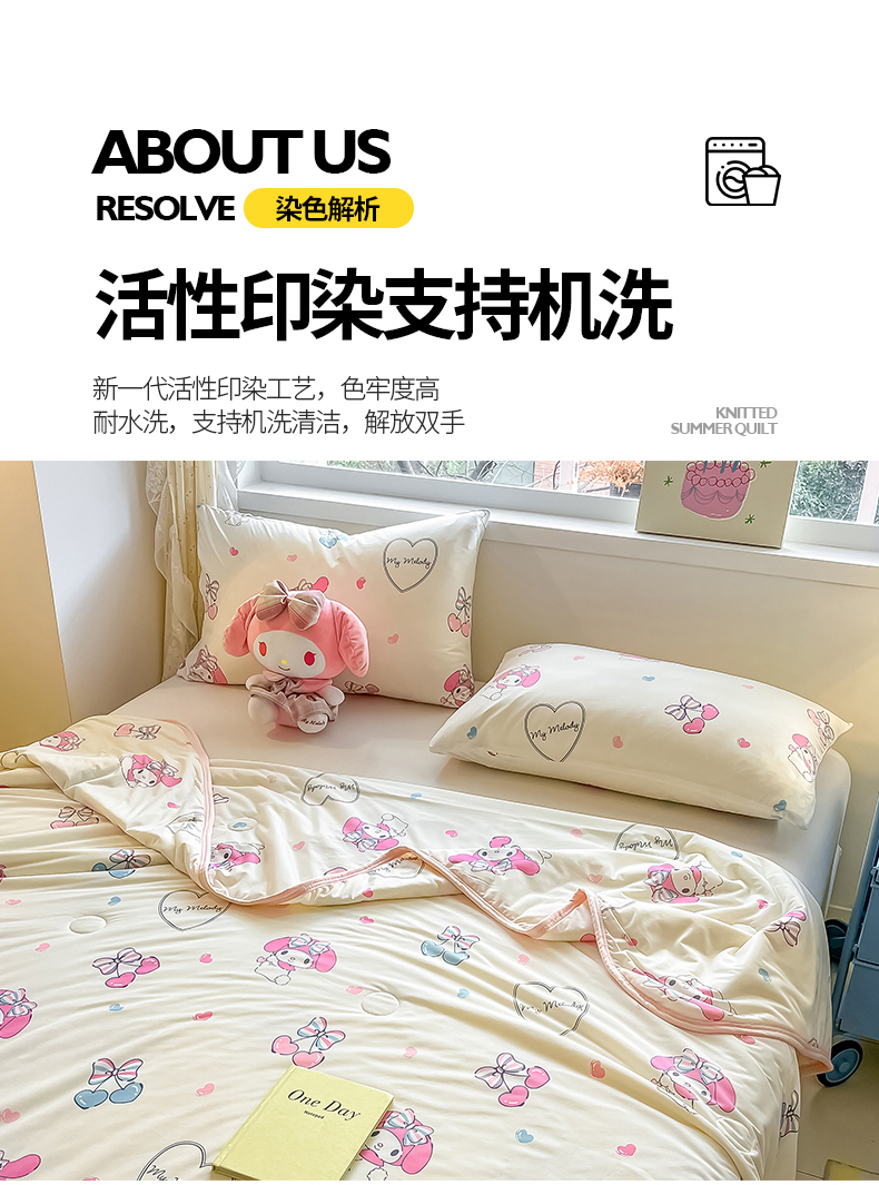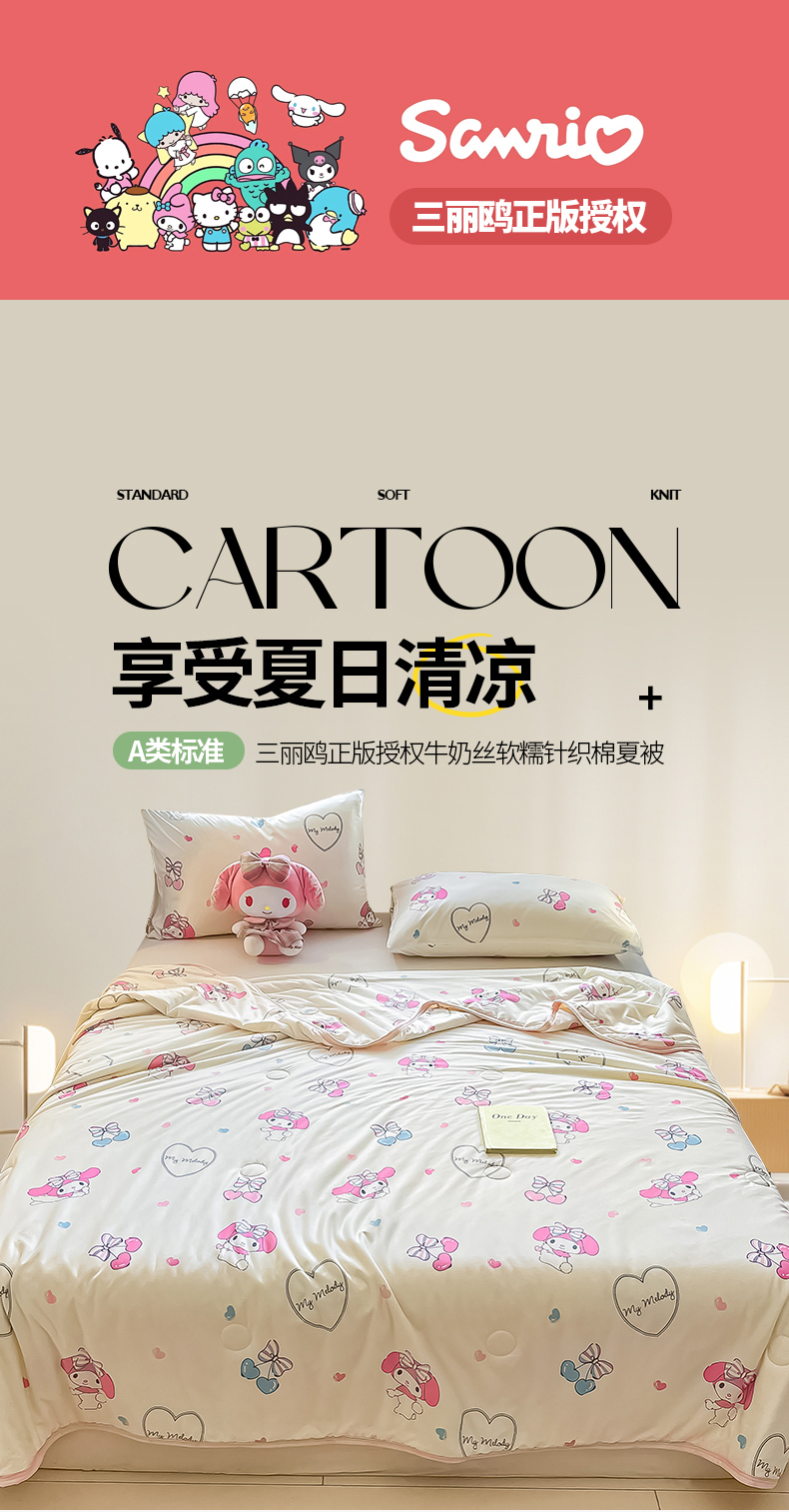 • 91家纺网 家纺一手货源 找家纺 桃子家居 2025新款A类三丽鸥正版授权高品质牛奶丝软糯针织棉大豆夏被系列 针织棉三丽鸥-蝴蝶结樱桃美乐蒂