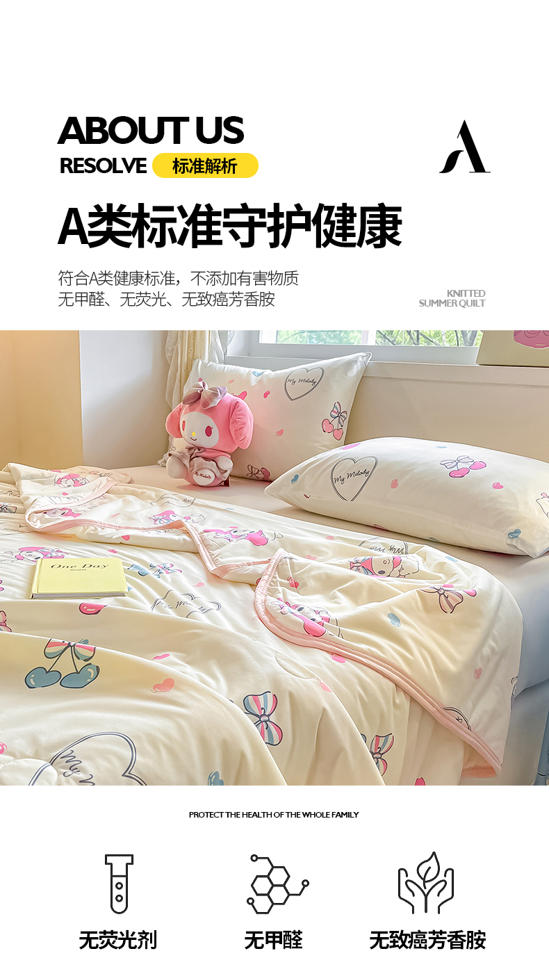 当前位置: 91家纺网 > 商品网购 > 被子 > 夏被 > 桃子家居 2025新款A类三丽鸥正版授权高品质牛奶丝软糯针织棉大豆夏被系列 针织棉三丽鸥-蝴蝶结樱桃美乐蒂