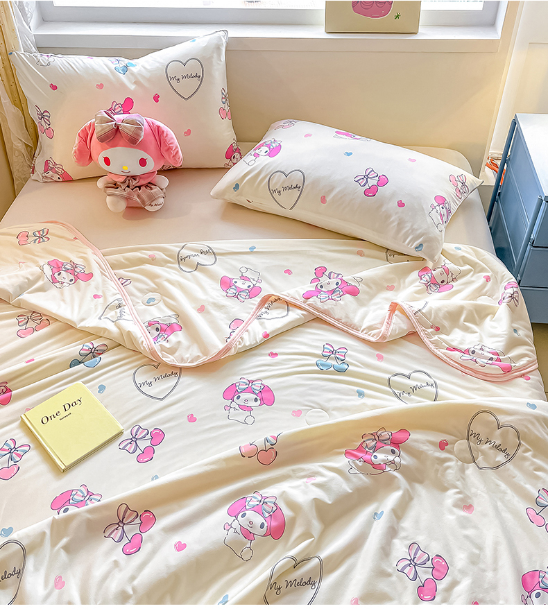 桃子家居 2025新款A类三丽鸥正版授权高品质牛奶丝软糯针织棉大豆夏被系列 针织棉三丽鸥-蝴蝶结樱桃美乐蒂