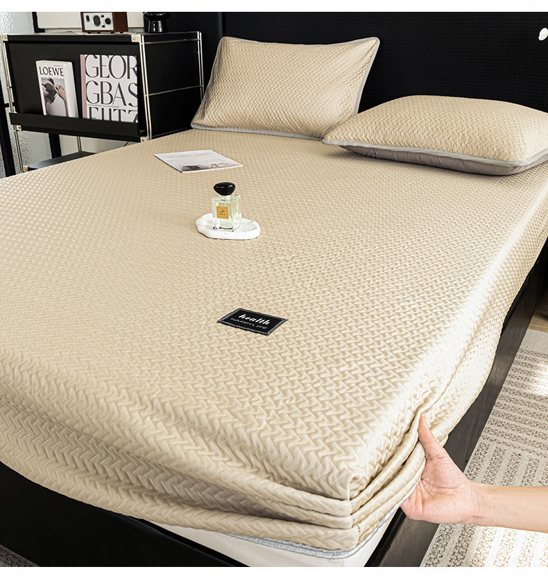 • 91家纺网 家纺一手货源 找家纺 倾慕家纺 2025新款PE大泡泡凉感床笠款凉席 箭纹卡其