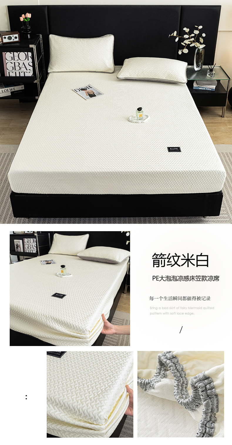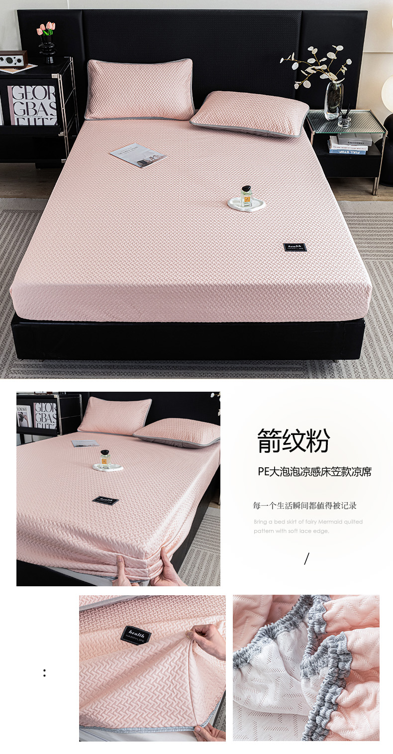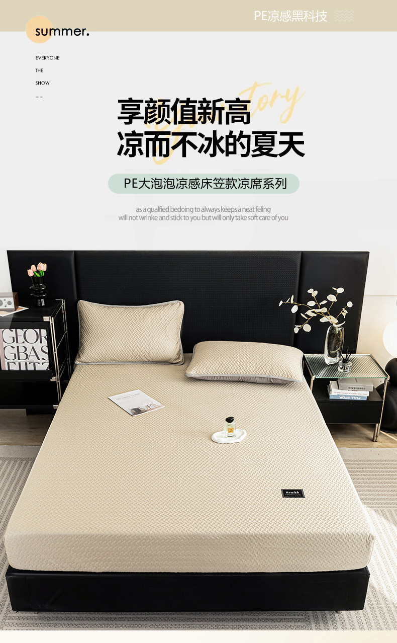 倾慕家纺 2025新款PE大泡泡凉感床笠款凉席 箭纹卡其