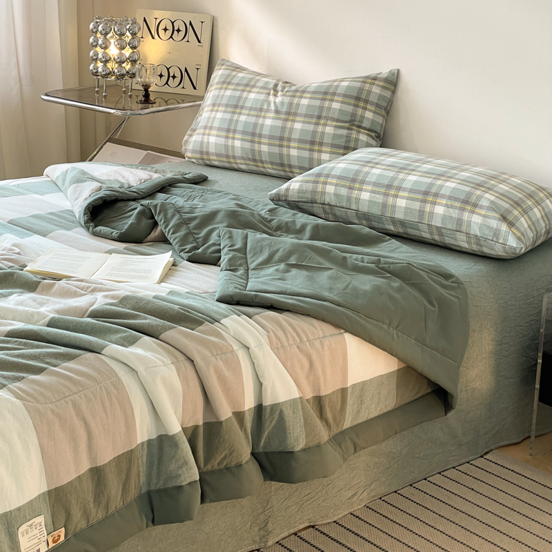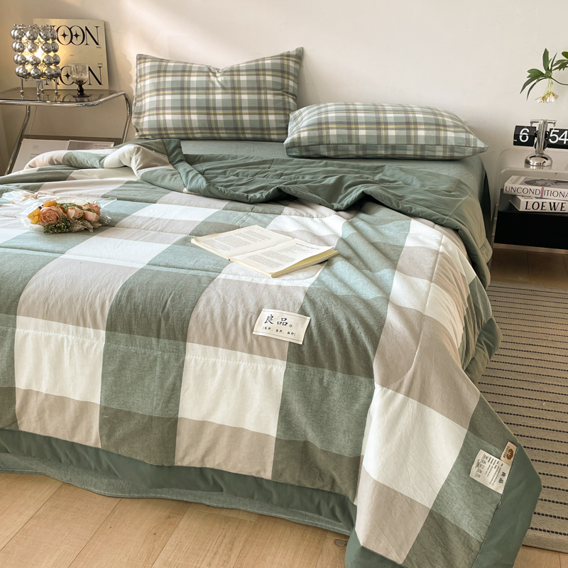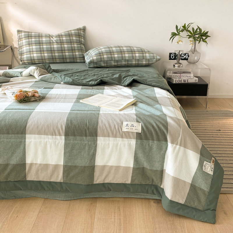 商品名称:2025梦初语新款无印风棉花夏被 绿大格